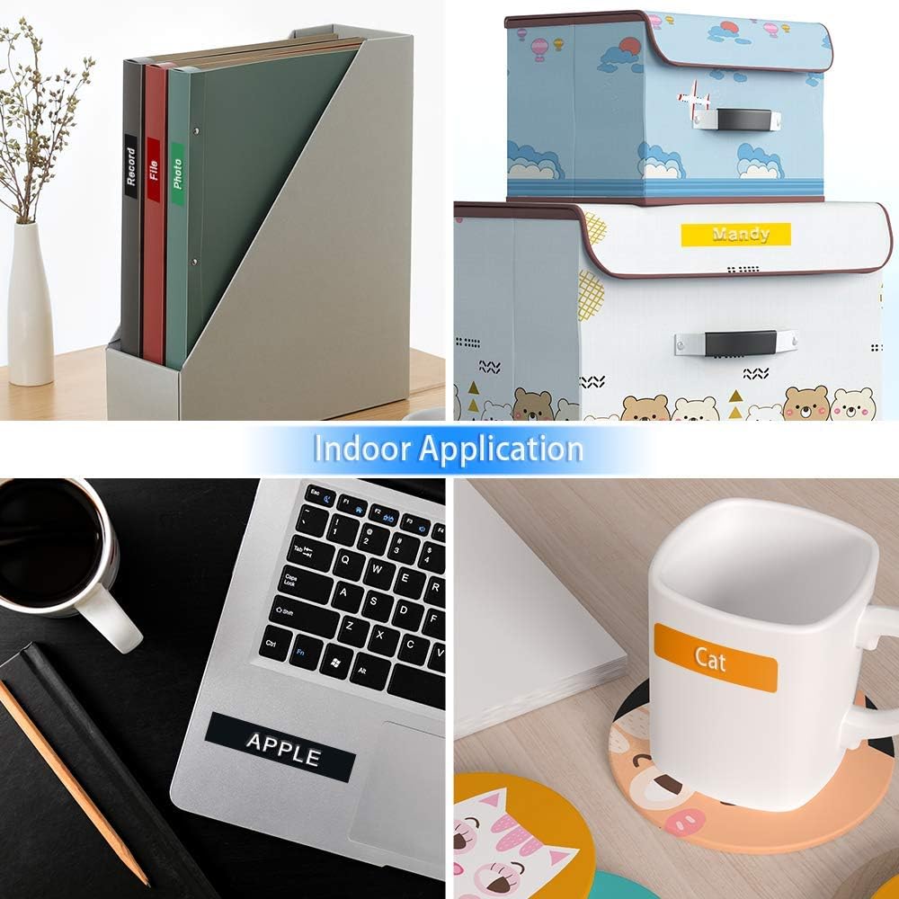 - Application: Ideal for home, office and outdoor use, labels resists fading and are designed to last. For labeling files, folders, shelves, books, cabinets, accessories, etc. Sticks to most clean surfaces and wonβt break or leave residue when removed