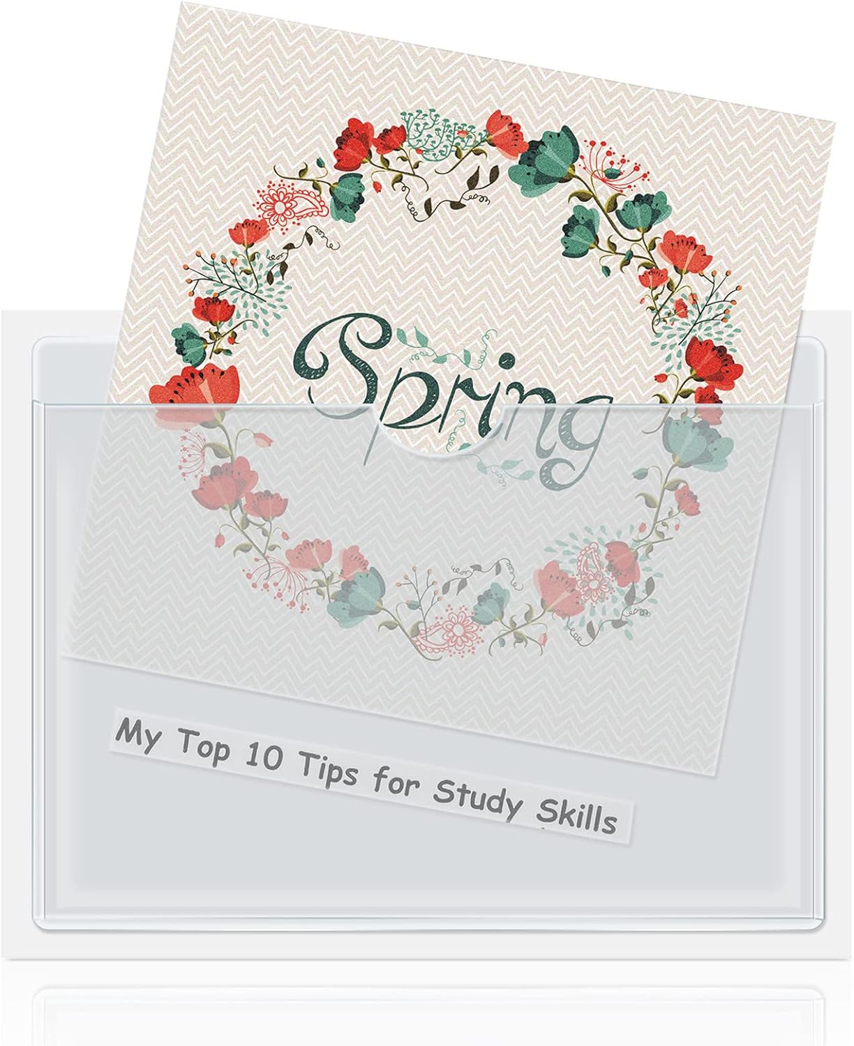 - Applicable Cards:the outer size of clear adhesive pockets is 3.6 x 4.8 inches,fits cards up to 4.4 x 3.15 inches.You will recieve 50 self-adhesive card holder for labels, waterproof, dustproof, and fingerprint-resistant.