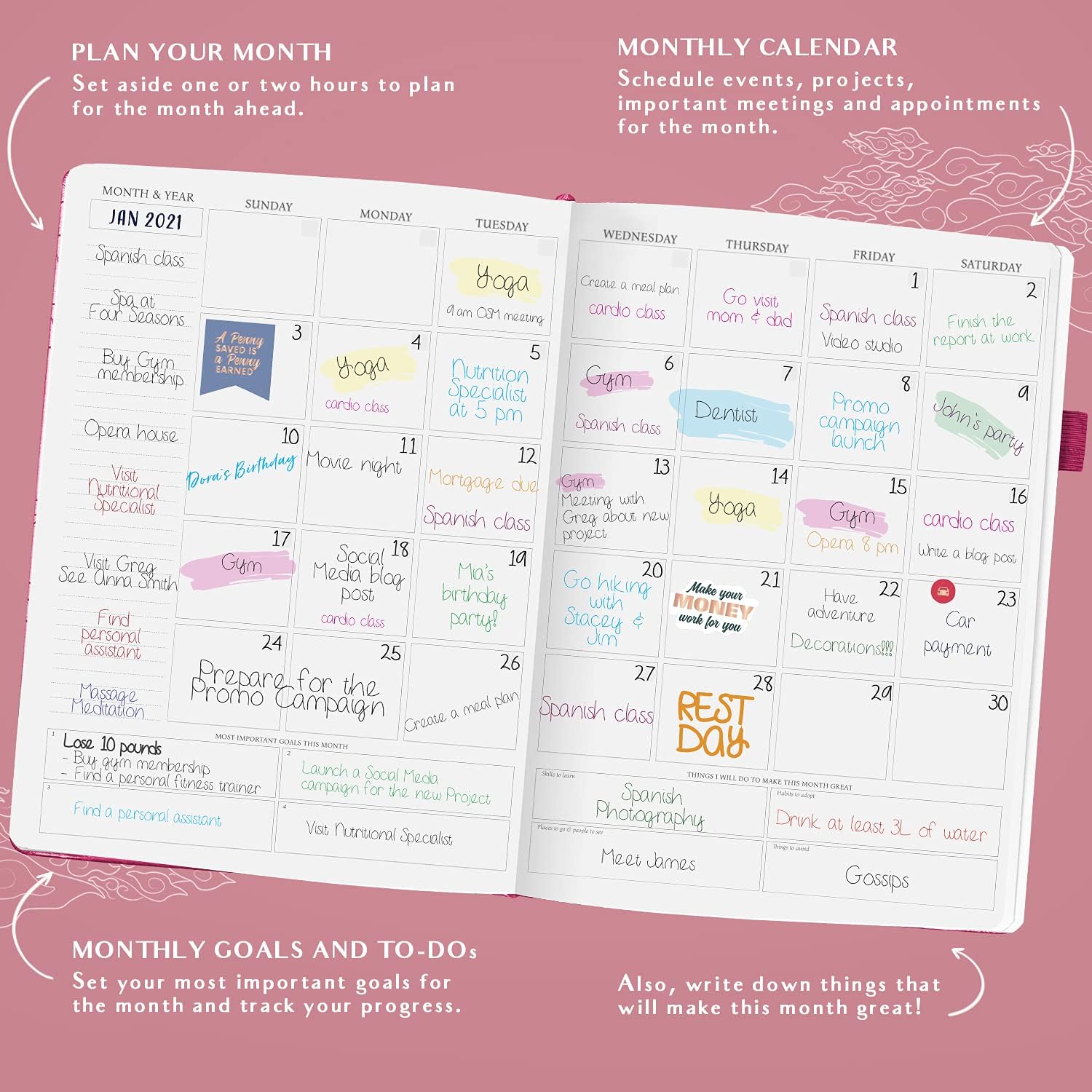 - 60-DAY SATISFACTION GUARANTEE – If you aren’t satisfied with your goal setting planner, we want to hear about any issues you have with business and personal planner and organizer. Reach out to us about appointment book, so we can provide a solution.