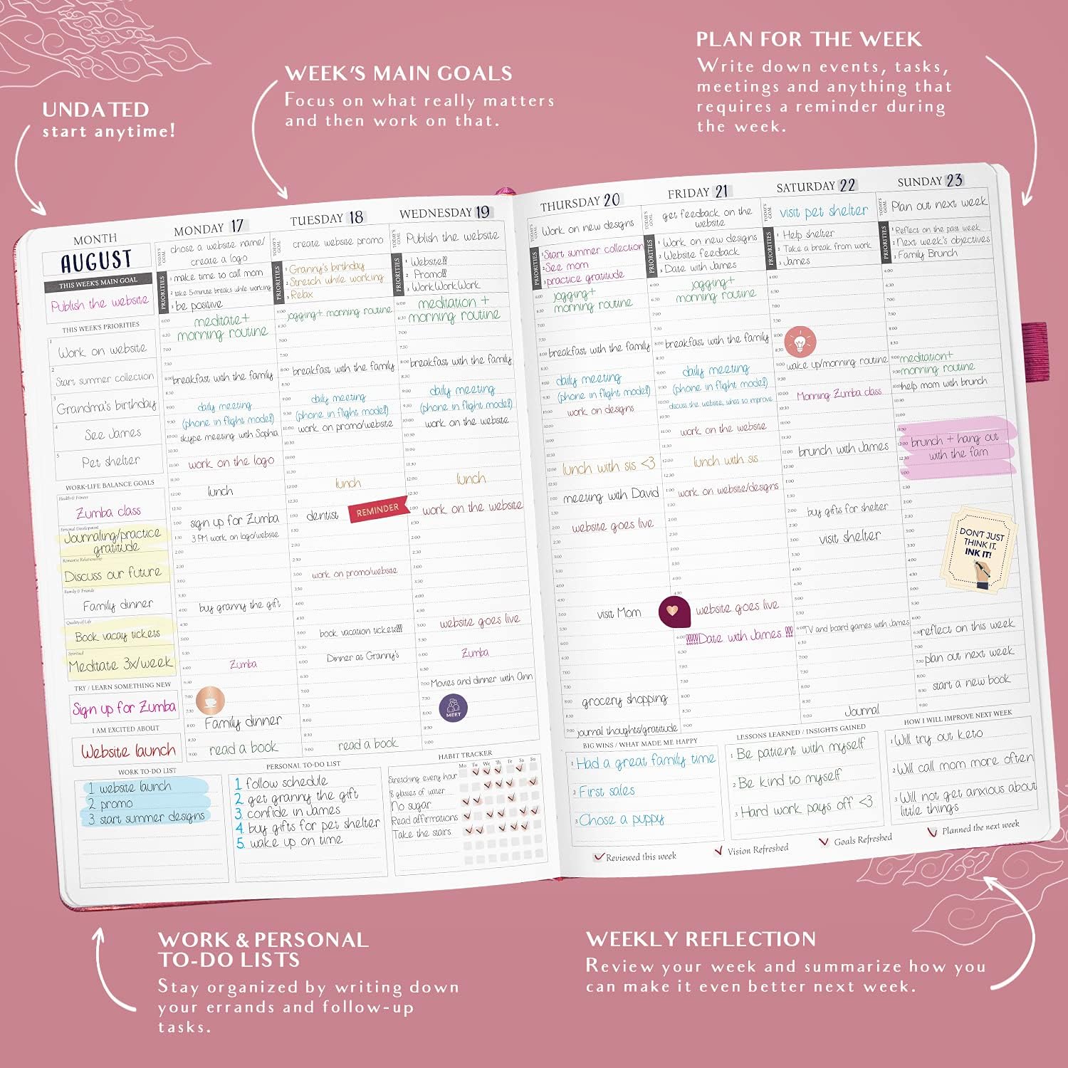 - IMPROVE WORK-LIFE BALANCE, BUILD NEW HABITS & FEEL HAPPIER – This week and day planner is designed to help you build and support a balanced lifestyle, using a daily habit tracker and monthly check-ins.