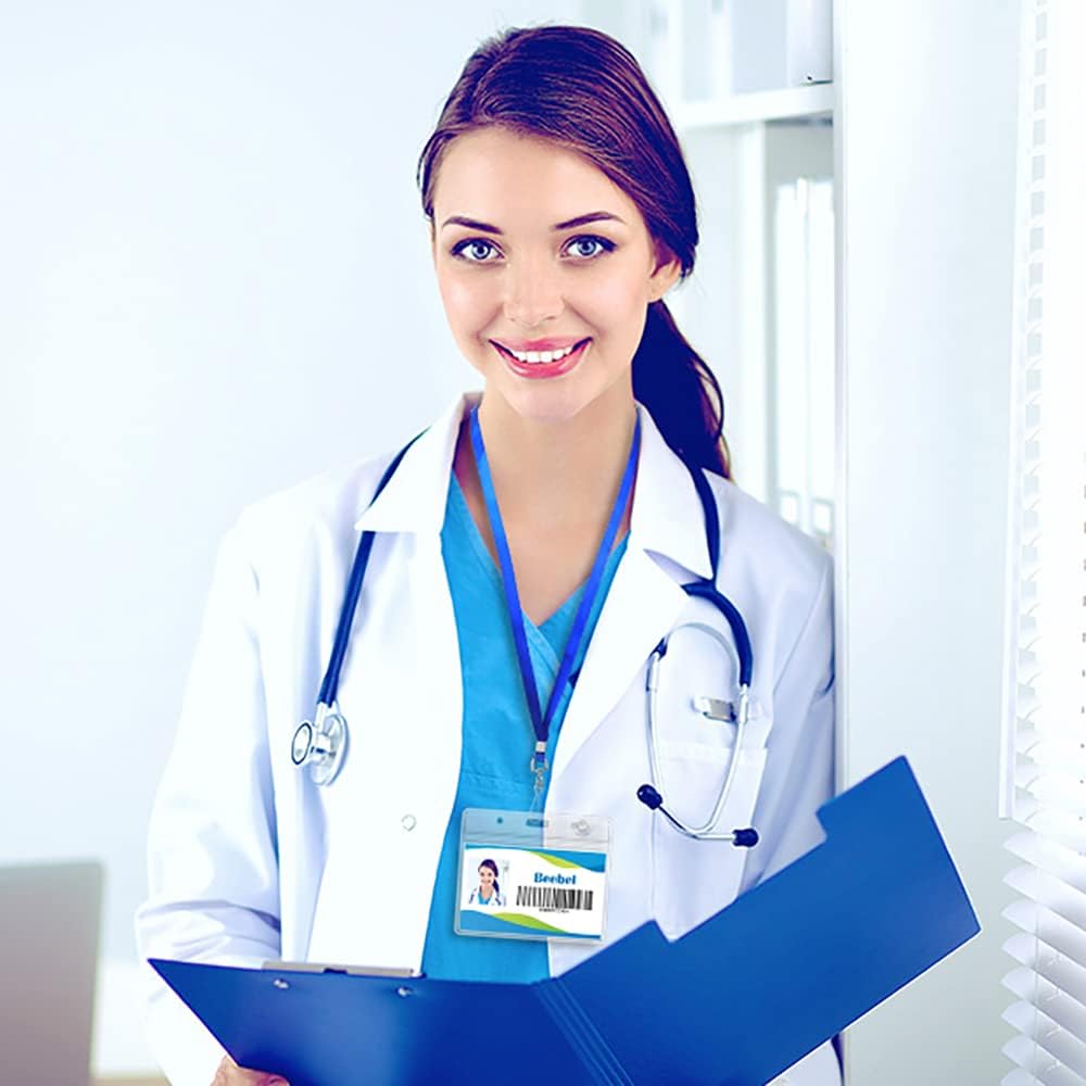 Beebel ID Badge Holder Lanyards with Waterproof Badge Card Bulk Lanyard for Name Tags Holders(Blue)
