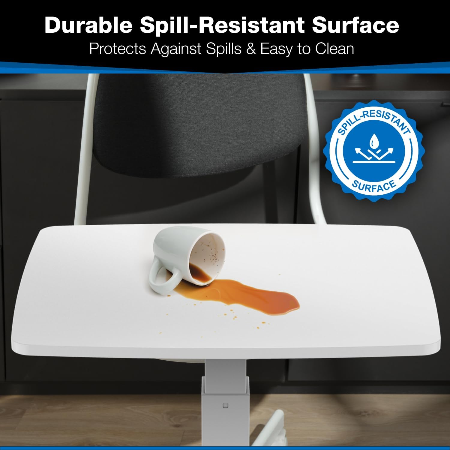 - Compact Yet Spacious Design: The 23.6” x 20.5” desktop offers ample room for your laptop, keyboard, and mouse, making it the ideal mobile laptop cart for small spaces in homes, offices, dorms, or classrooms.