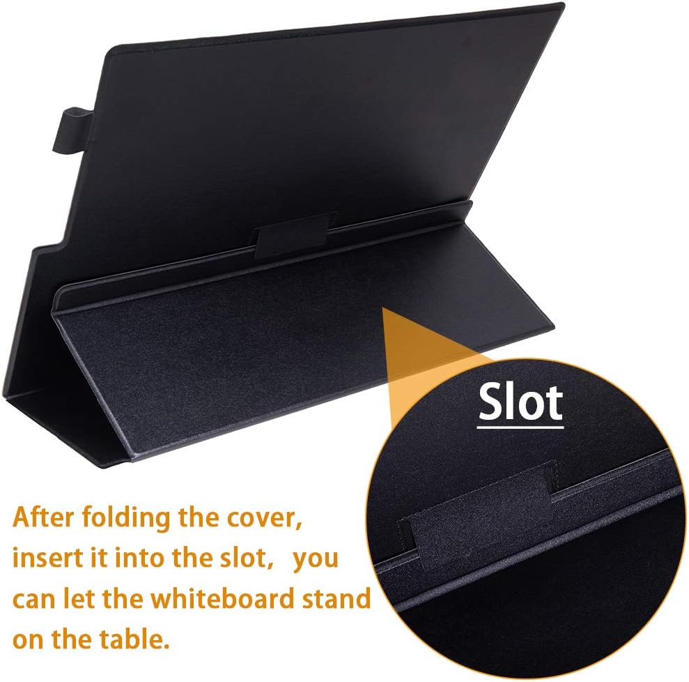 - 💎【UNIQUE DESIGN】Inspired by IPAD case and thin notebook, we created our unique portable whiteboard which is much thinner than a notebook with magnetic dry erase surface and can stand on the top of table/desk.