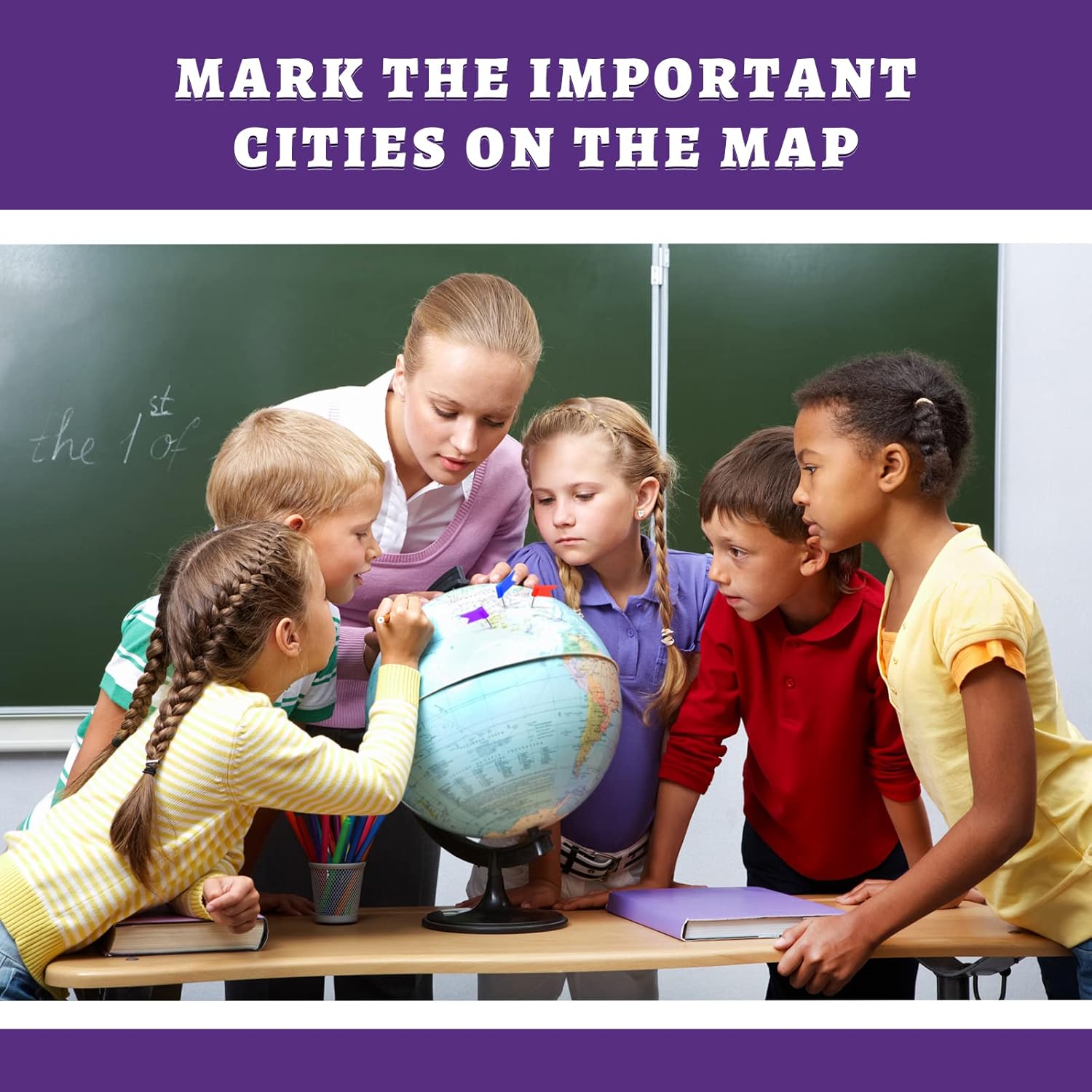 - Wide Use: The end of the travel board pin is durable and pointed for easy to use on maps, globes, cork boards, foam boards and bulletin boards and etc. Map pins are great for school, office, home and travel