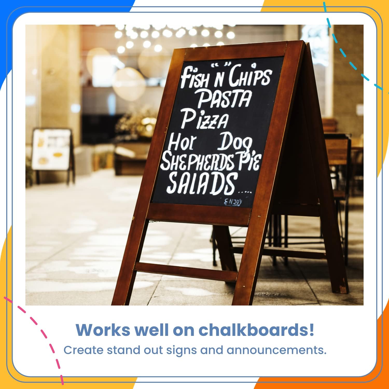 - Can Be Used On Many Surfaces - These erasable chalk markers for blackboard can be used to write on wedding signs, shop storefront, milestone boards, menus, LED board, contact paper, mirror, car window markers, bistro chalk marker