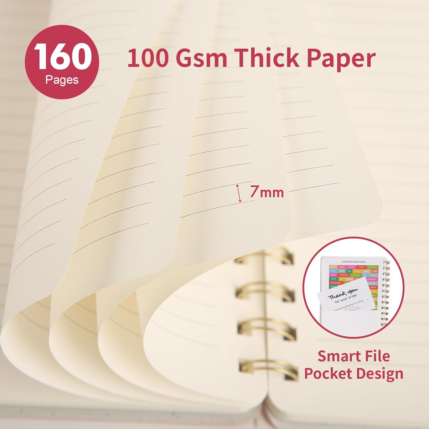 - Organized and Functional: The Oneirom Spiral Journal includes an inner pocket for storing loose papers, receipts, and other essentials, keeping your notes and documents neatly organized