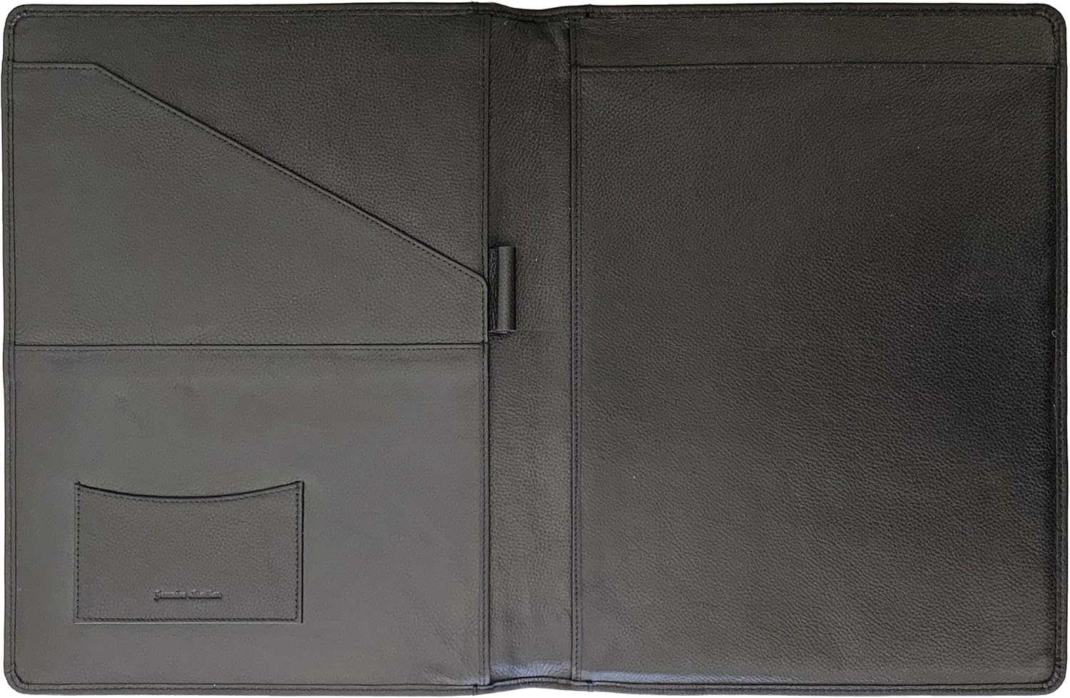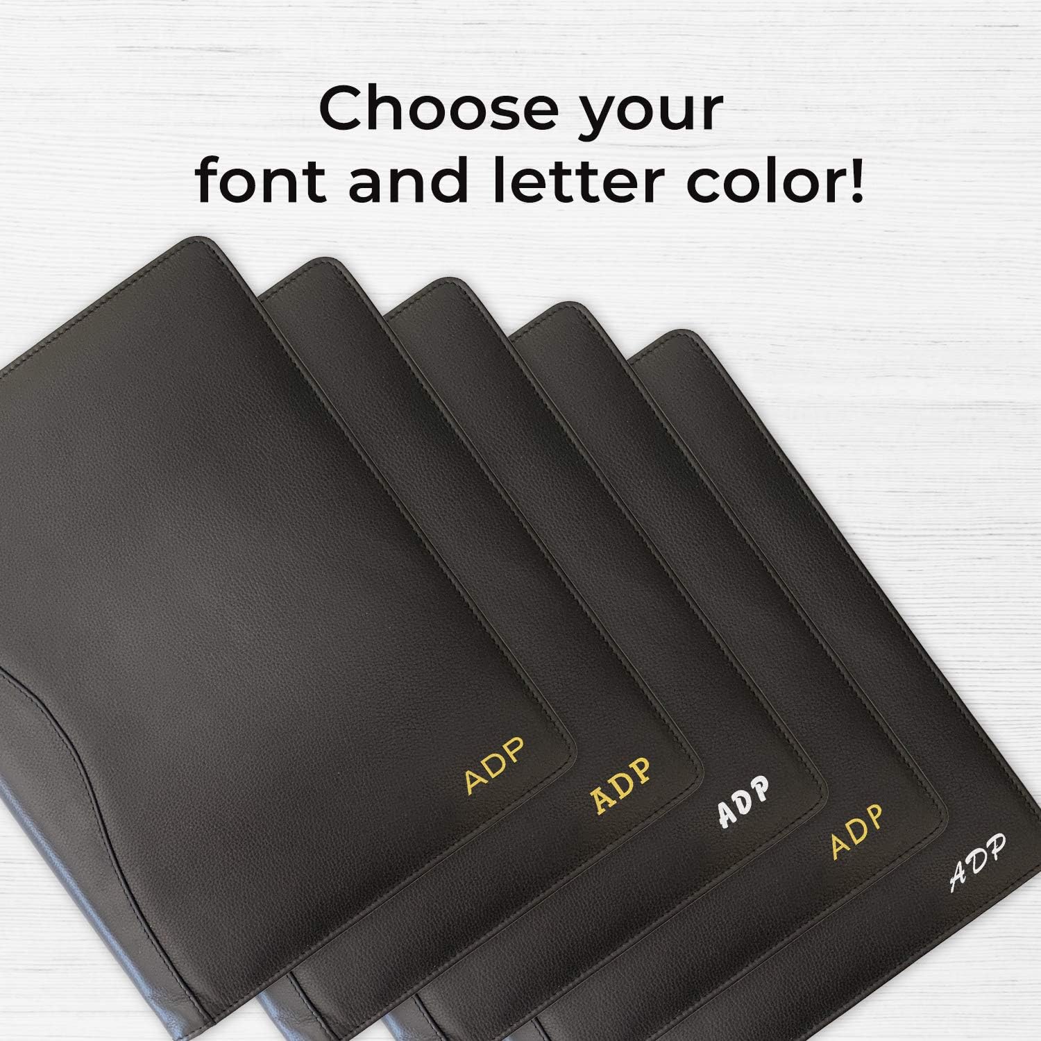 Personalized Premium Genuine Leather Portfolio Folder, Padfolio for Men and Women, with Business Card Holder, Pockets, Pen Loop, Document Organizer - Black