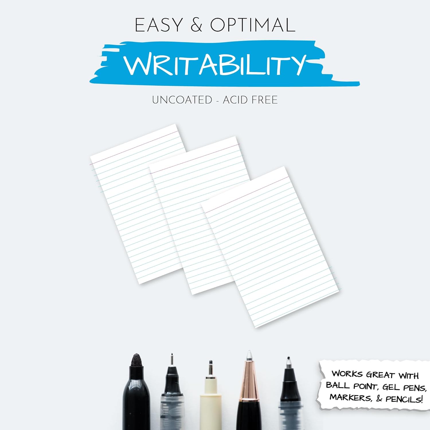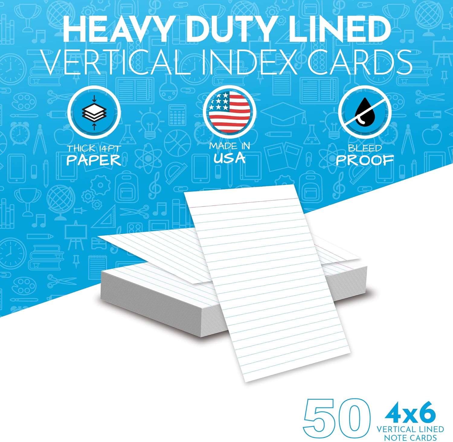 - DETAILS: (50 pack) 4” x 6” double sided, blue lined note cards with header portion at top of card. Lines printed on thick 14PT heavy duty un-coated white card stock paper for writability.