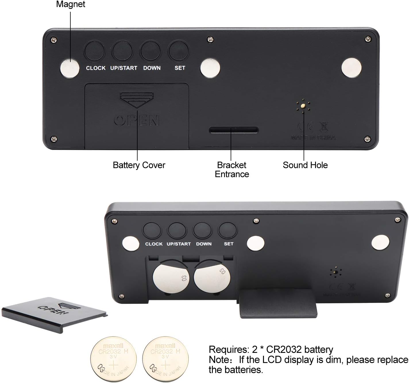 - ✔️Upgraded version: Bigger size & Count-up function. Product size: 15.5 * 5.7 * 1.1cm / 6. 1*2.2*0.4in. LCD screen size: 13.8*4cm / 5.4*1.6in.