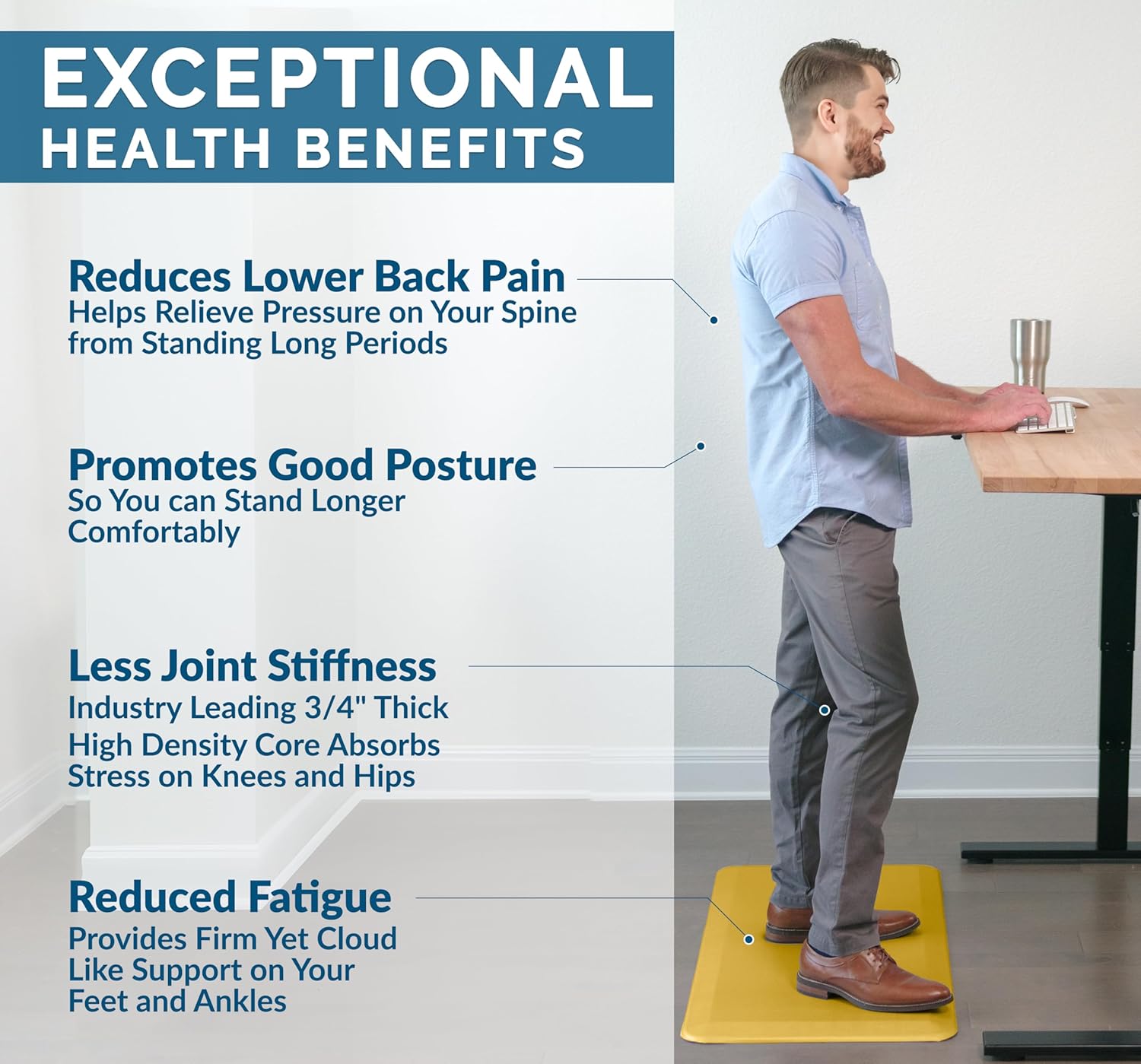 ComfiLife Anti Fatigue Floor Mat – 3/4 Inch Thick Kitchen Mats for Floor, Standing Desk Mat, Kitchen Rug – Comfort at Home, Office – Durable – Stain Resistant – Non-Slip Bottom (20" x 39", Mustard)