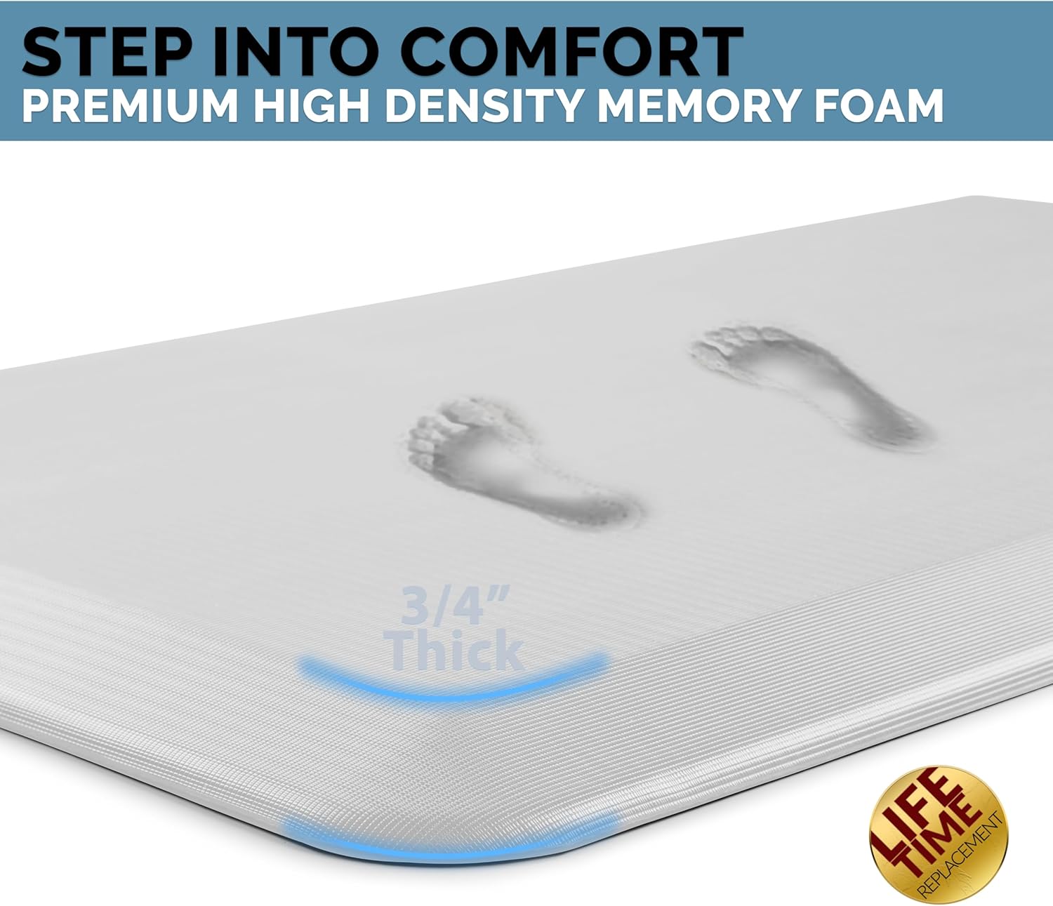 - Premium Quality Construction: The ComfiLife cushioned mat core is made of 3/4 thick, high-density memory foam that reduce discomfort on feet, knees, legs, and back while standing for an extended period. This kitchen mats cushioned anti-fatigue offers exceptional durability and long-lasting support. Perfect for high-traffic areas like the kitchen, office, or garage.