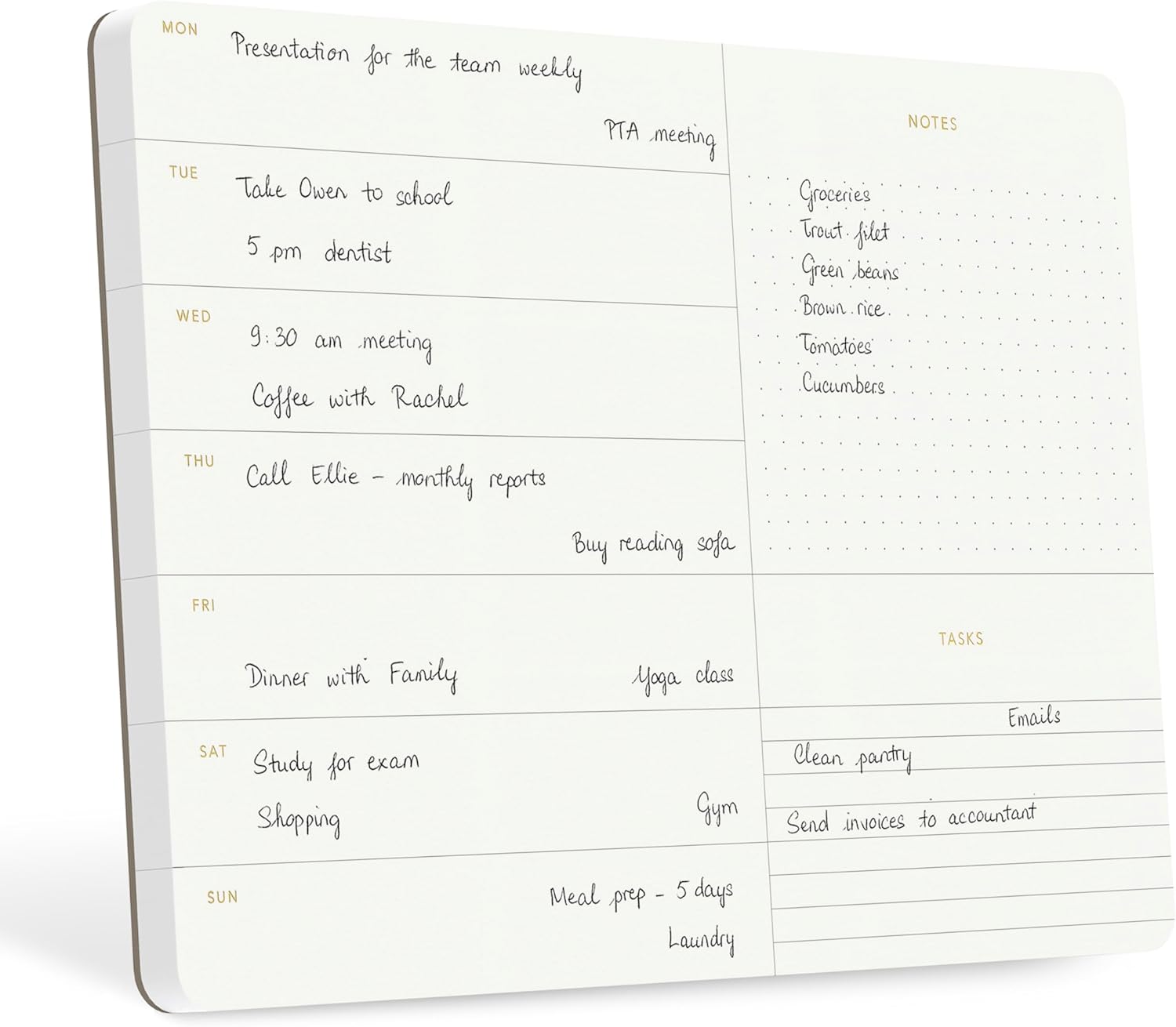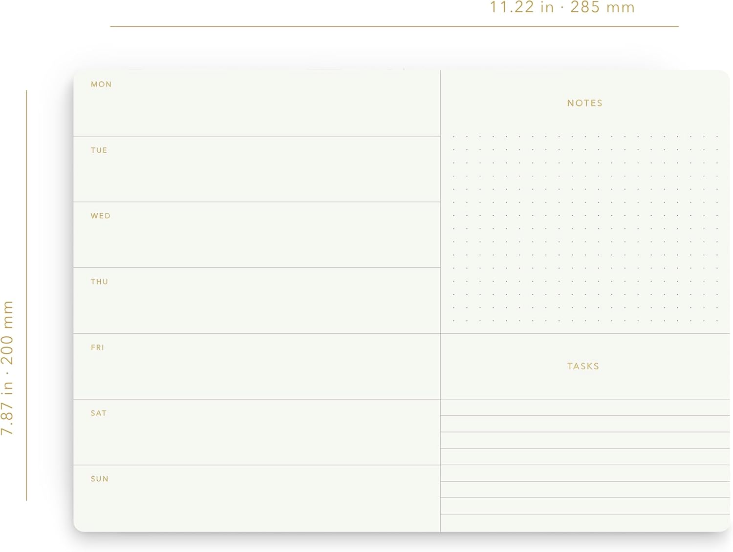 - STREAMLINED WEEKLY OVERVIEW: Our weekly desk pad's clean layout allows you to view your week at a glance, harmonizing appointments, and tasks with dedicated sections for notes, keeping you focused and on track.