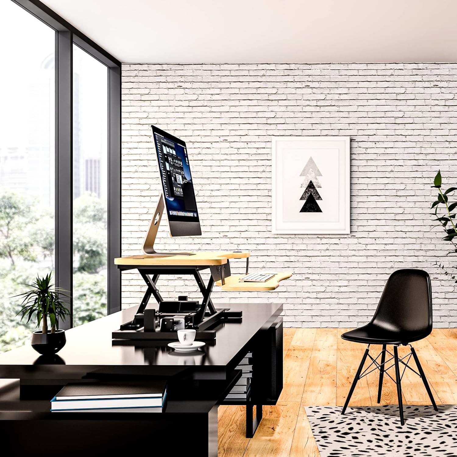 - Fully Assembled & Ready: Our sit stand desk converter arrives fully assembled, so you can start using it right out of the box. Simply place it on your workstation and plug it in. Proudly made in the USA, this stand up desk converter measures 40" wide by 24" deep and is built to meet the needs of home offices and professional setups.