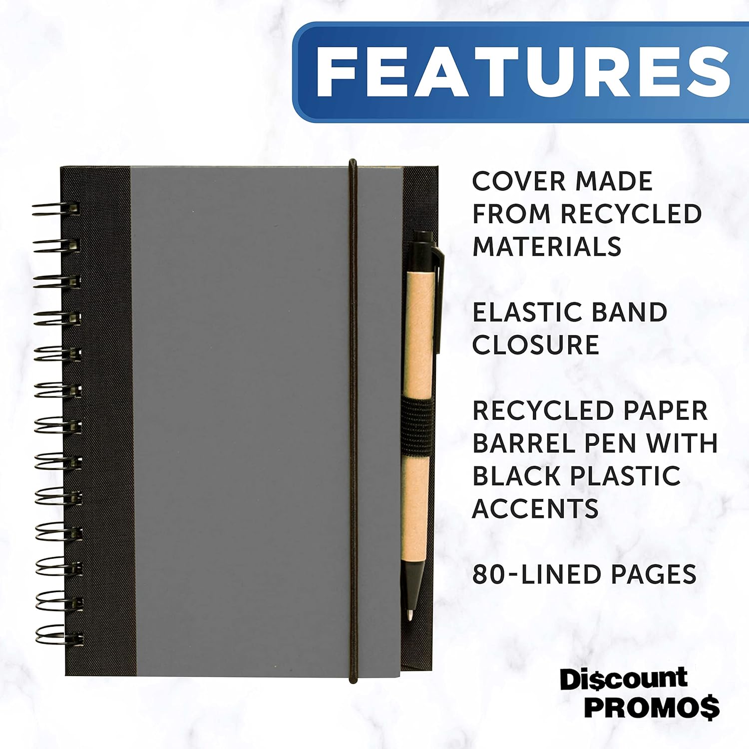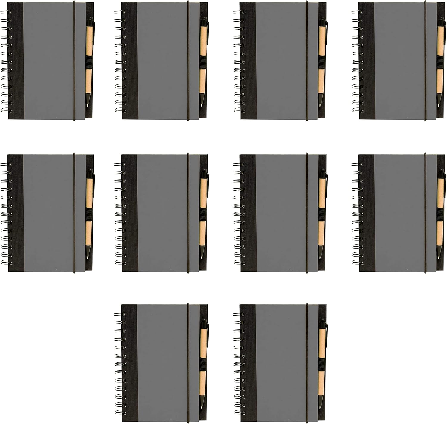 DISCOUNT PROMOS Eco Block Notebooks with Pens Set of 10, Bulk Pack - Perfect for School, Office, Business, Home - Smoke