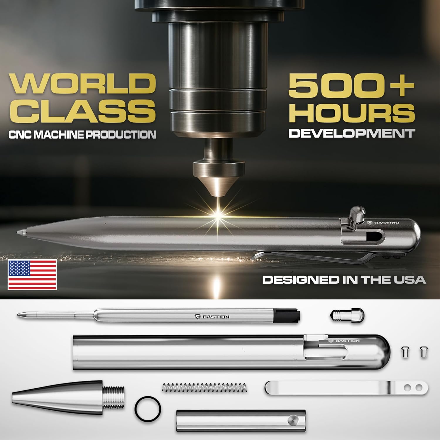 BASTION® Luxury Bolt Action Pen, Durable Professional Ballpoint Pen with Fine Tip, EDC Pen Ink Refillable Pen - 100% Titanium