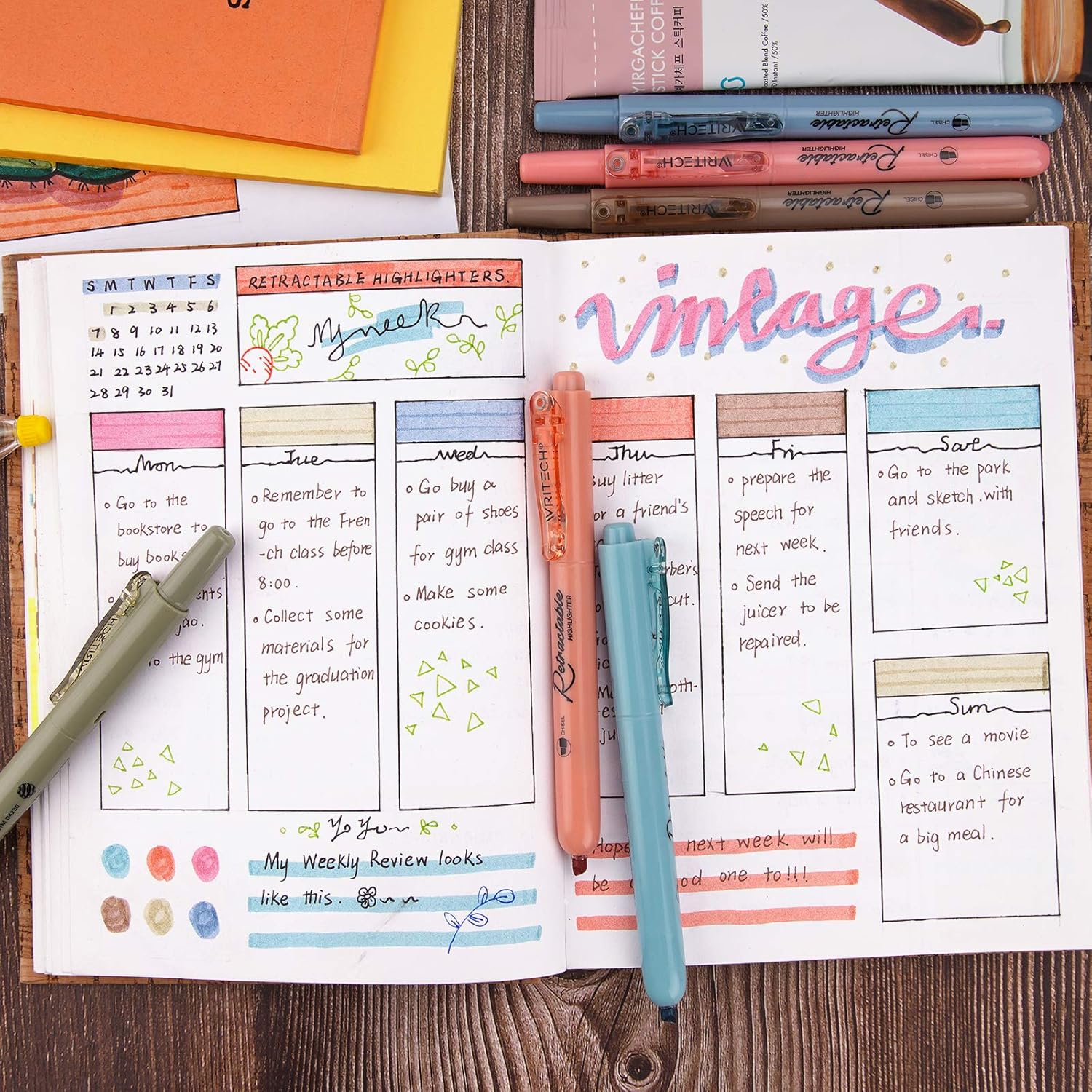 WRITECH Retractable Highlighters Assorted Colors: Chisel Tip Click Aesthetic Highlighter Marker Pens Pack Multi Colored Ink No Bleed Smear for Highlighting Journaling (12ct Mild+Vintage)