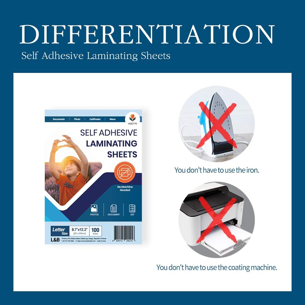 Self Stick Laminating Sheets 8.5 x 11 Inches, 4mil, Pack of 100, No Heat, No Machine, Peel and Stick Laminating Sheets, Self Adhesive Contact Paper, Self Sealing Clear Vinyl Stickers by VIOLLETO