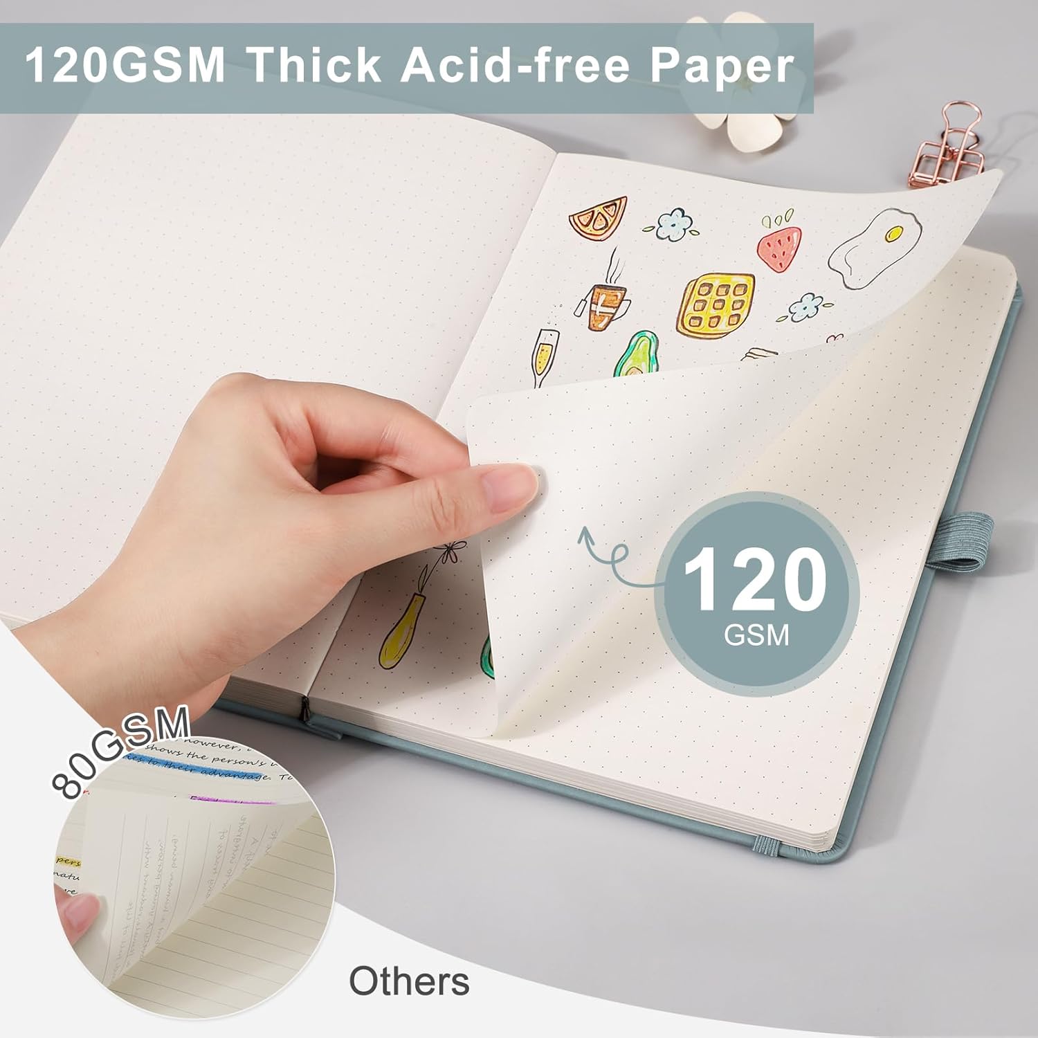 - 120GSM Ultra-Smooth Paper: Acid-free, bleed-resistant pages prevent ink feathering for seamless writing, sketching, or inking—ideal for pens, markers, or watercolors