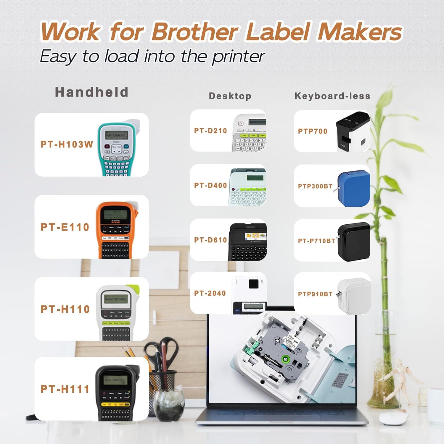 - Clear Label Tape Compatible for Brother P Touch Label Maker: PT-D200,PT-D202, PTD-210, PT-D220, PT-H100, PT-H103W, PT-H110, PT-H111, PT-D400, PT-D400AD, PT-D450, PT-D460BT, PT-D600, PT-D610BT, PT-D600VP, PT-P700, PT-P750W, PT-E500, PT-E550W, PT-D400VP, PT-1090, PT-1130, PT-1160, PT-1170, PT-1180, PT-1190, PT-1230PC, PT-1880C, PT-1890SC, PT-2040, PT-2430PC. More printers model see the description below
