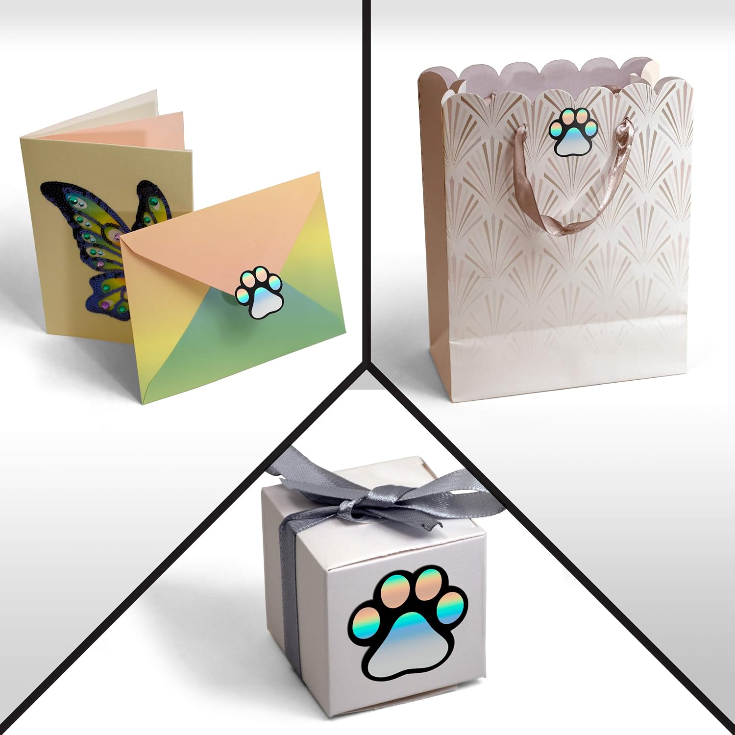 Paw Prints Animal Stickers- 500 1.5" Labels, Dog Paw Prints for Kids, Parties, Vets, Kennels, and Mailing. Made in The USA by Kenco (Glitter Holo Paws)
