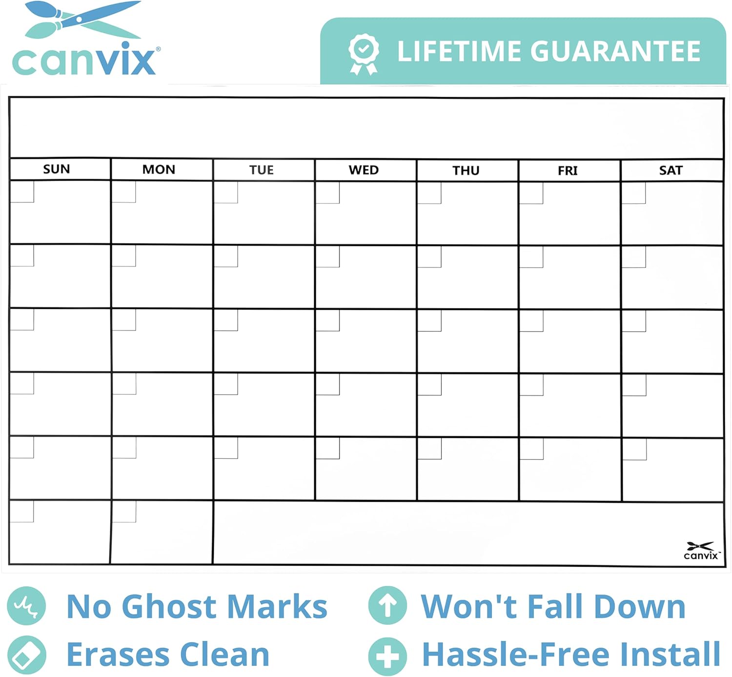 Dry Erase Whiteboard Wall Calendar Decal Sticker – 48 x 36 Inch Large Self-Adhesive, Removable, Residue Free Contact Paper for Kids, Home, and Office – Marker & Eraser Included