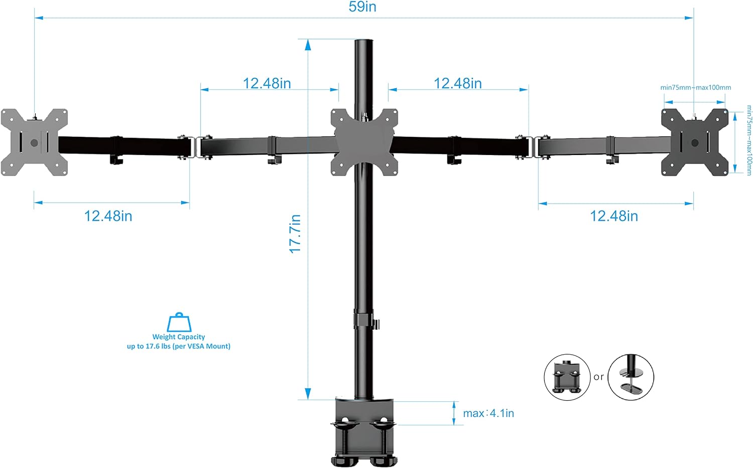 - INCUDES TRIPLE MONITOR MOUNT: The DM3 monitor mount comes with a grommet hole mounting application; licensed under U.S. Patent Nos. 9,113,703, 9,277,809, 9,554,644, 9,924,793 and other pending/issued U.S. and foreign patents.