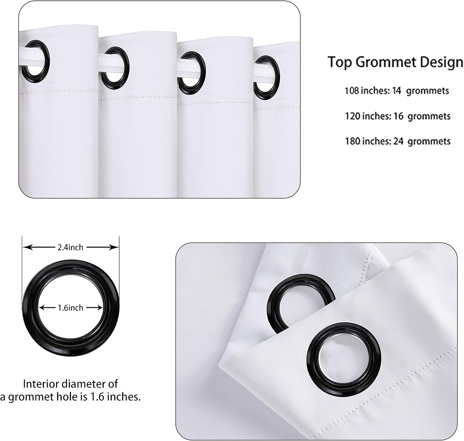 - WHAT'S IN THE PACKAGE? Each set includes 1 curtain panel, and each window drape measures 108-inch (9 ft) length by 108-inch (9 ft) width. 14 elegant metal grommets with 1.6-inch inner diameter, fit well with standard or decorative curtain rods, which makes the curtains easy to install and slide.