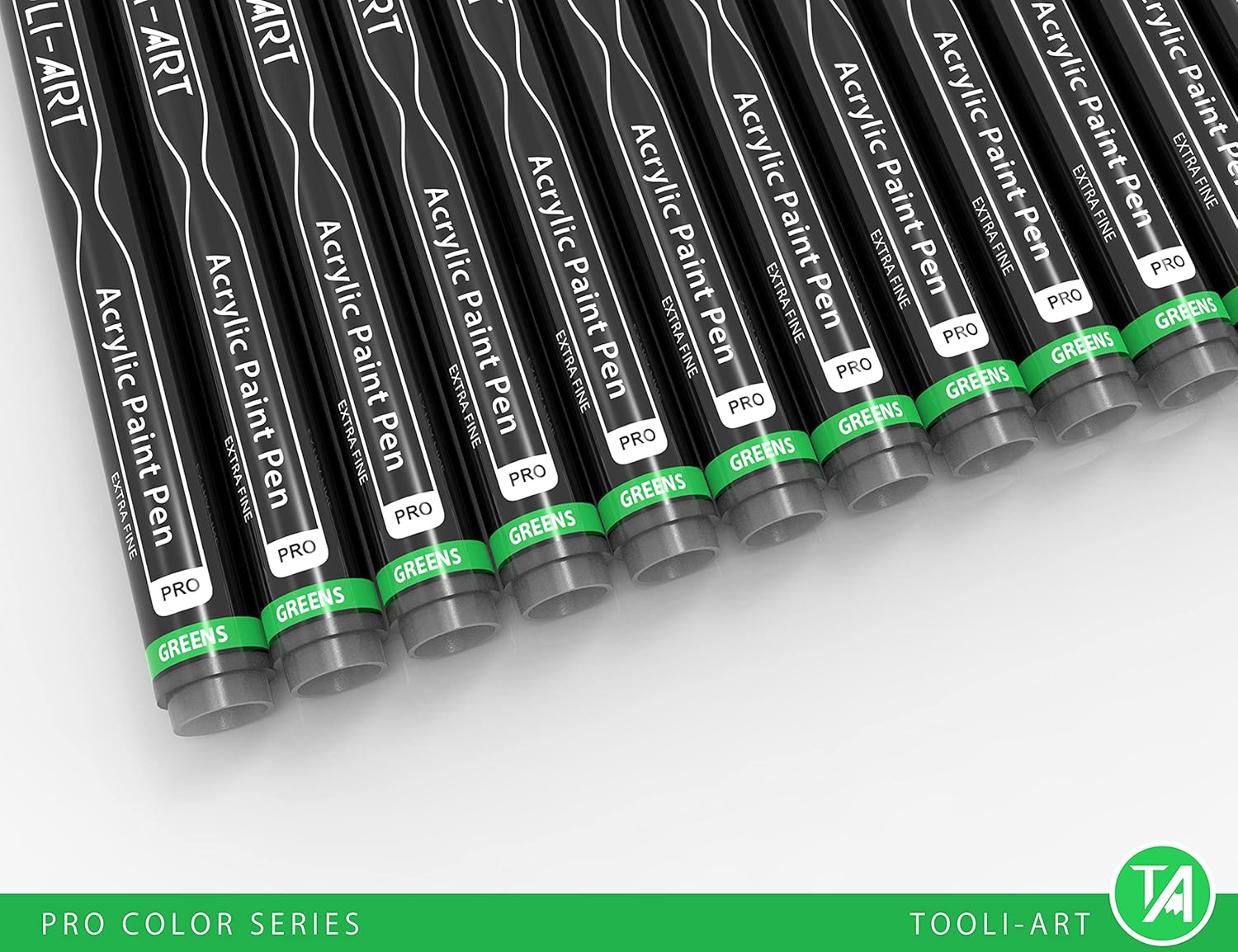 Acrylic Paint Pens 22 Green Tones Assorted Pro Color Series Markers Set 0.7mm Extra Fine Tip for Rock Painting, Glass, Mugs, Wood, Metal, Canvas, Projects, Non Toxic, Waterbased, Quick Drying