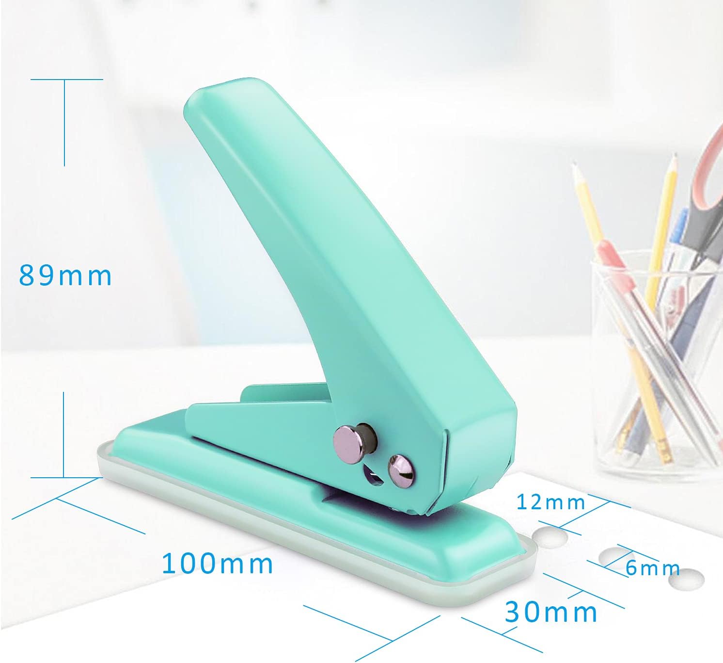 Single Hole Puncher Handheld 1/4 Inches Hole Punch, 20 Sheet Paper Punch Capacity Metal Hole Puncher with Skid-Resistant Base for Paper, Chipboard, Art Project, Green