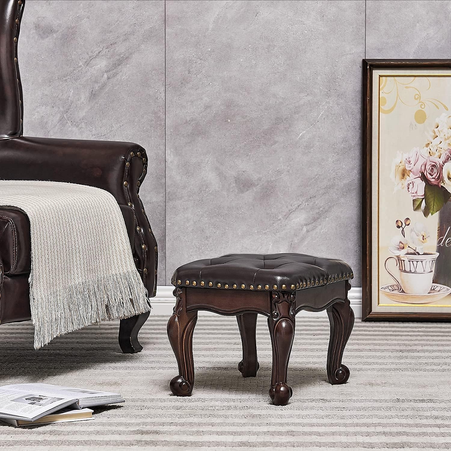 Foot Stool Ottoman Foot Rest Microfiber Leather Upholstered Footstool for Sofa, Living Room, Entryway, Solid Wood Stool (Dark Brown)
