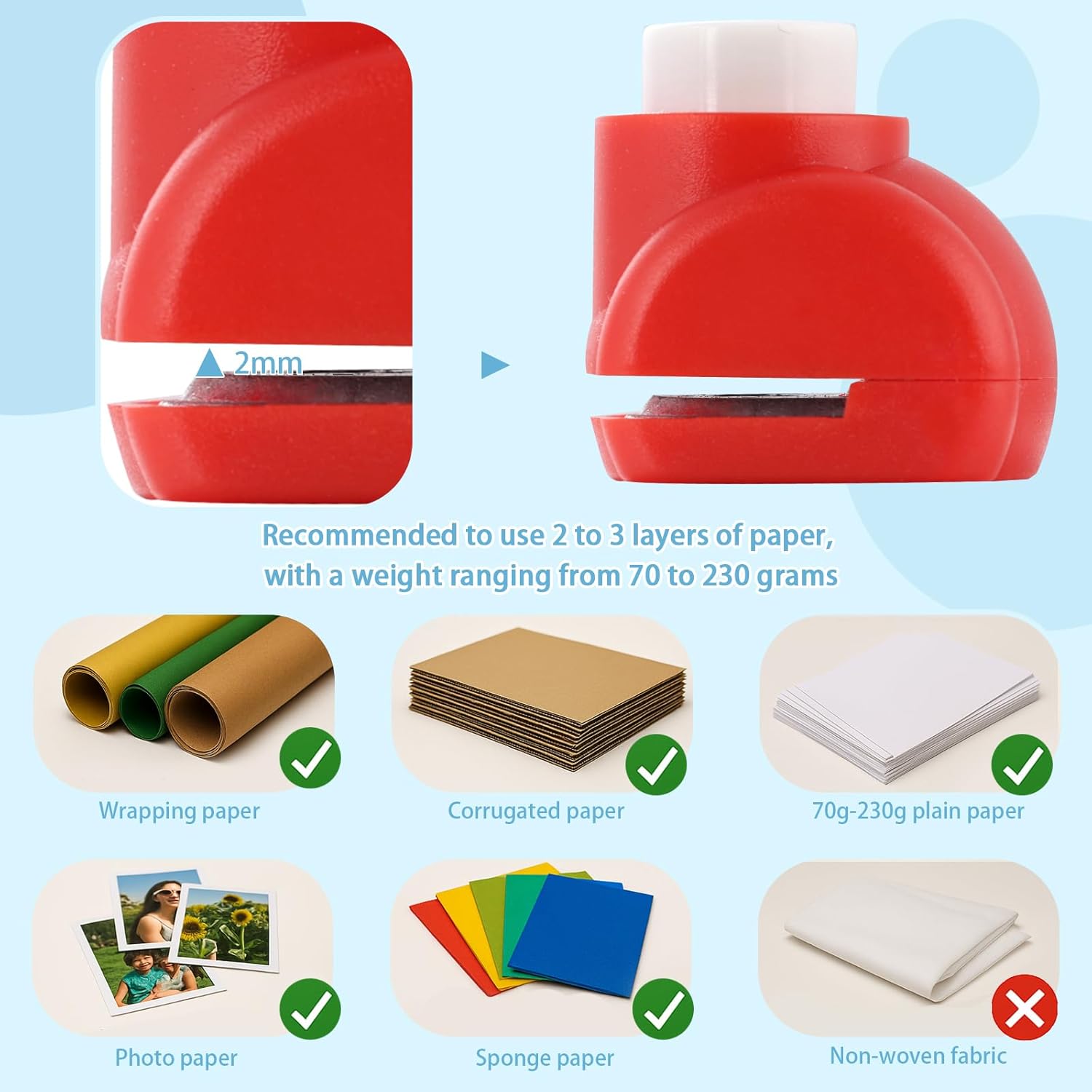- CHILDREN-FRIENDLY - Shape paper punch is suitable for kid's small hands. The spring button punch is easy to use. A narrow slot to avoid hurting your little one's fingers. Even a baby can effortlessly press the botton and cut the paper.