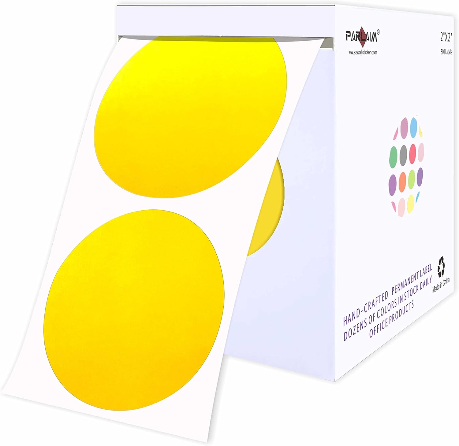 PARLAIM 2" Yellow Round Color-Code Circle Dot Labels on a Roll, 500 Stickers, 2 inch Diameter for Inventory Garage Sale Office School