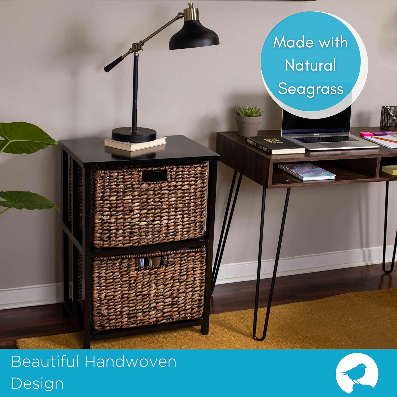 BIRDROCK HOME 2 Tiered File Cubby w/Wood Top - File Cabinet, Home Office Storage, Nightstand, Decorative Wooden Organizer | Desk, Modern Table, Shelves, Side Table, Craft Furniture - Brown Wash
