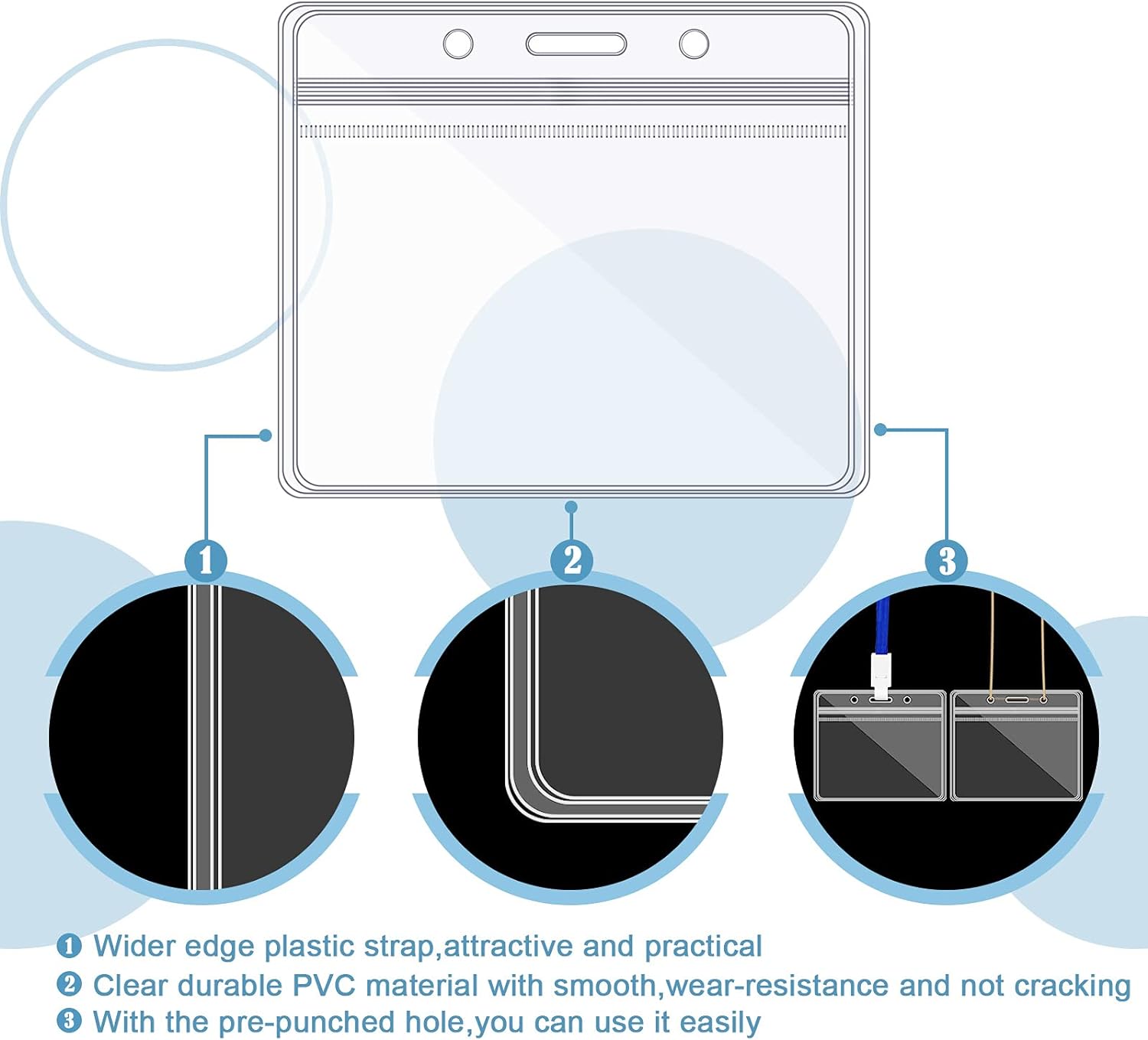 - Waterproof card holder: adopting horizontal design, each clear badge holder can accommodate up to 5 ID cards the size of a credit card, it can keep your name card, ID card or traffic pass safe and dry
