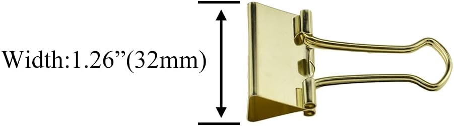 HAHIYO Binder Clips Paper Clamps Spring Steel Sturdy Medium 1.26 inches Width 0.39 Inch Capacity No Sharp Edges Heavy Duty Tight Grip Reusable Gold Metal Bright Finish for Home Office School 13 Pack
