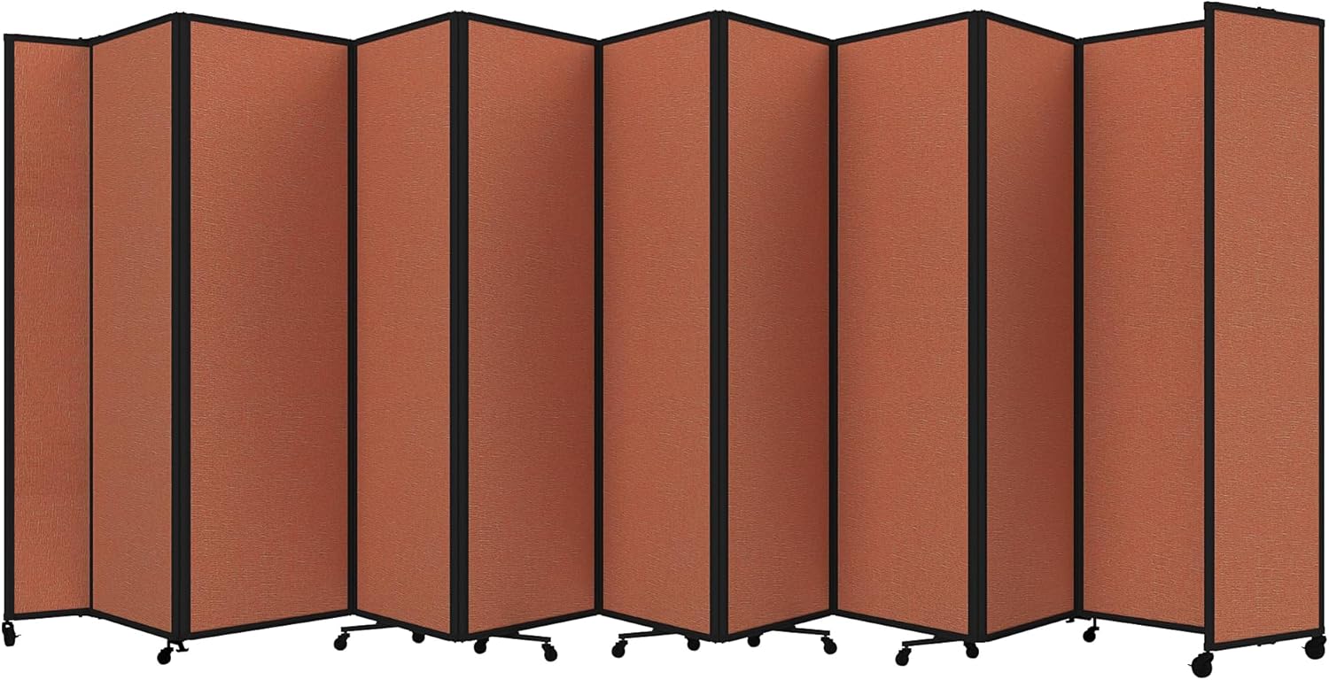 Versare Room Divider 360 Portable Wall Partition | Folding Panels | Large Freestanding Divider | Locking Wheels | Temporary Room Separator | 25' x 7'6'', Papaya