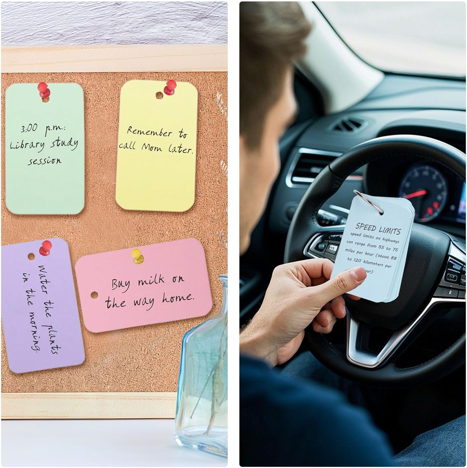 - Super Value Pack – Includes 1,500 blank index cards with rings (2.2” x 3.5”) in 7 colors: white (300 pcs), and blue, green, purple, yellow, orange, red (200 pcs each), plus 8 durable metal rings. Perfect for students, teachers, and training institutions