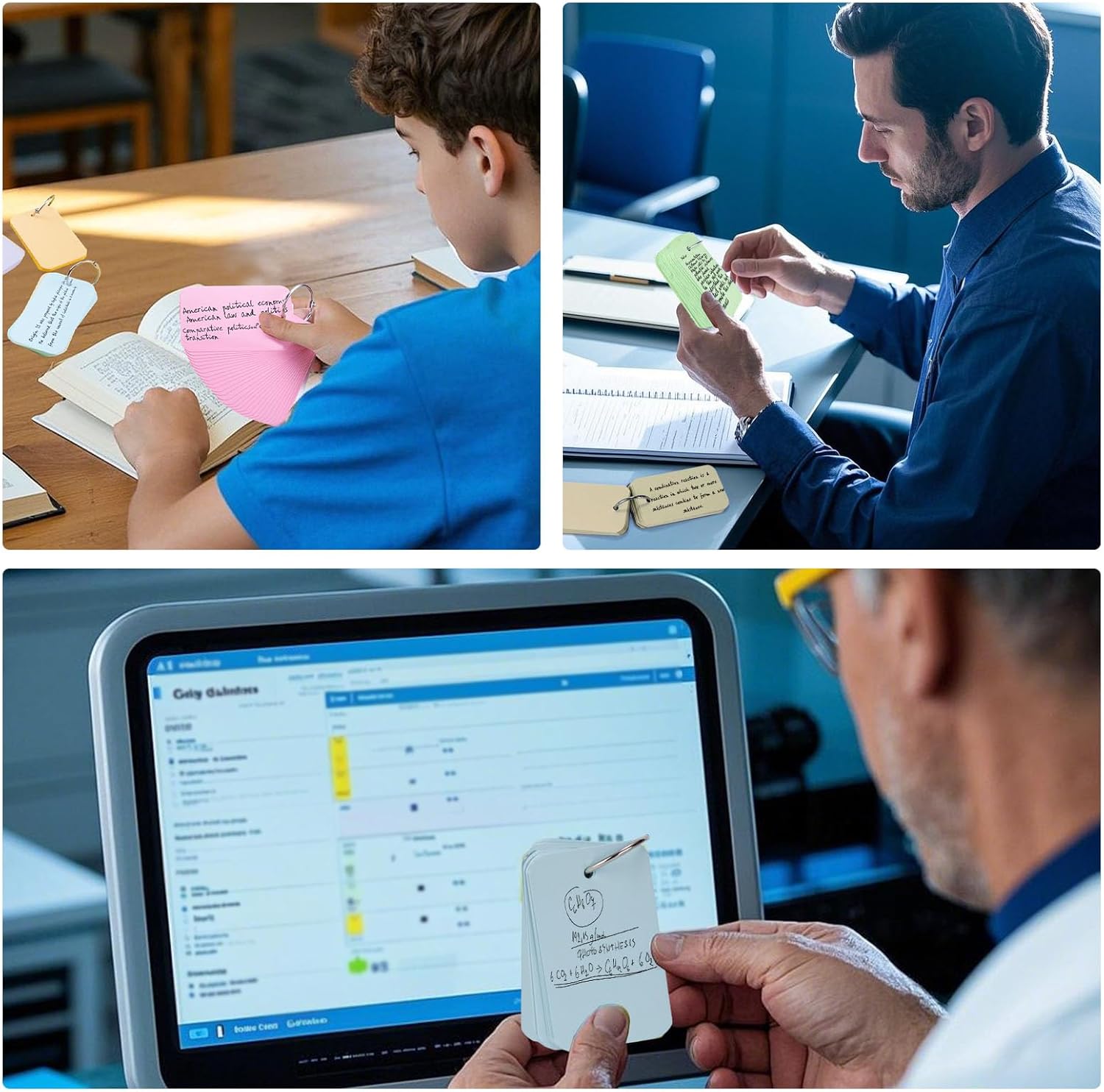- Space-Saving – Compact and portable, these 2.2” x 3.5” flash cards save 37% more space than traditional 3” x 5” index cards, fitting easily in backpacks. The ring-bound design ensures no page loss, making them perfect for libraries, offices, and even the gym