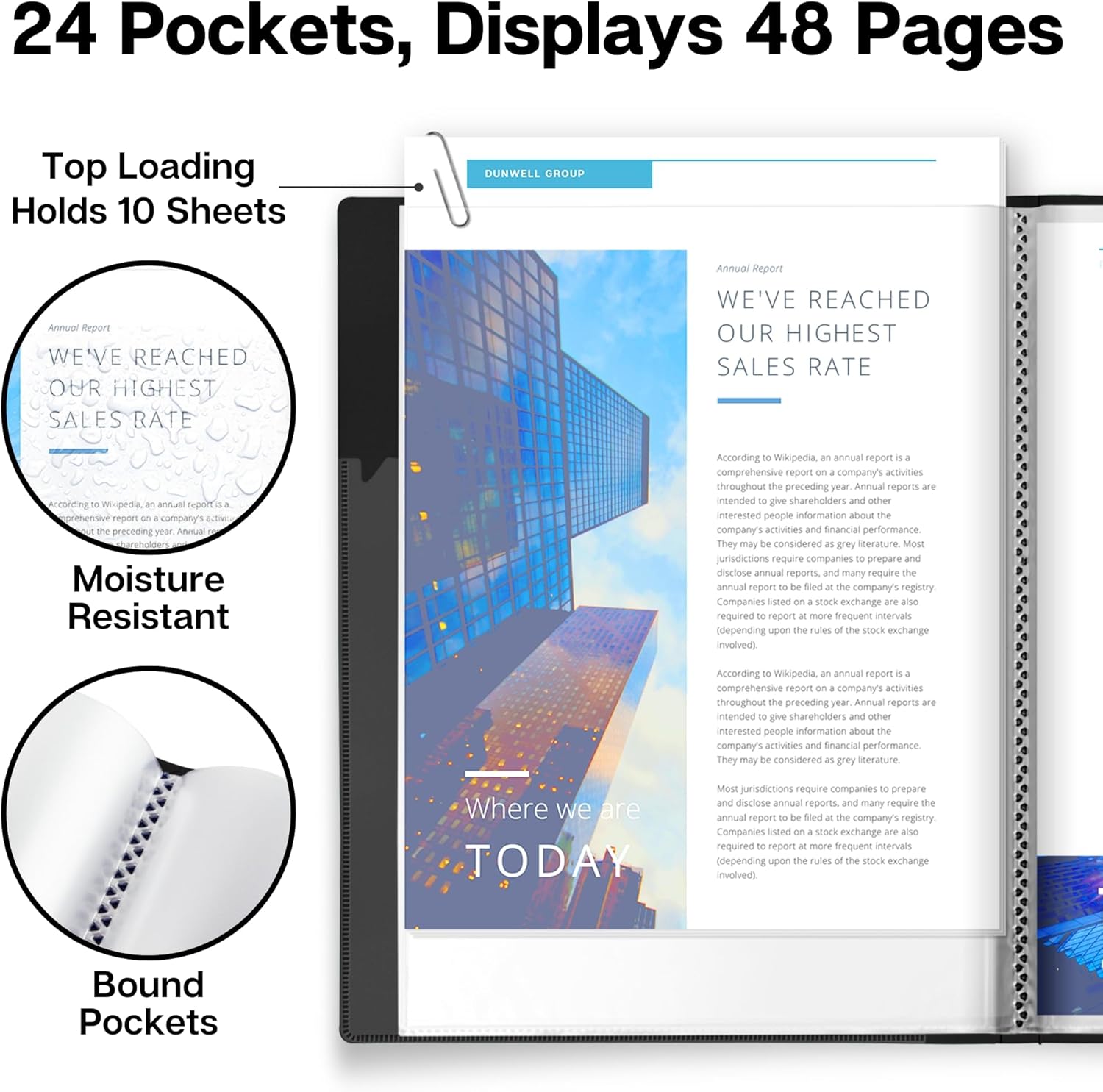 Dunwell 9x12 Presentation Book (Black), 24-Pocket Folder with Plastic Sleeves, Displays 48 Pages pf 9 x 12 or A4 Documents, Certificates, Keepsakes, Kids Art, Acid-Free Poly Portfolio Binder