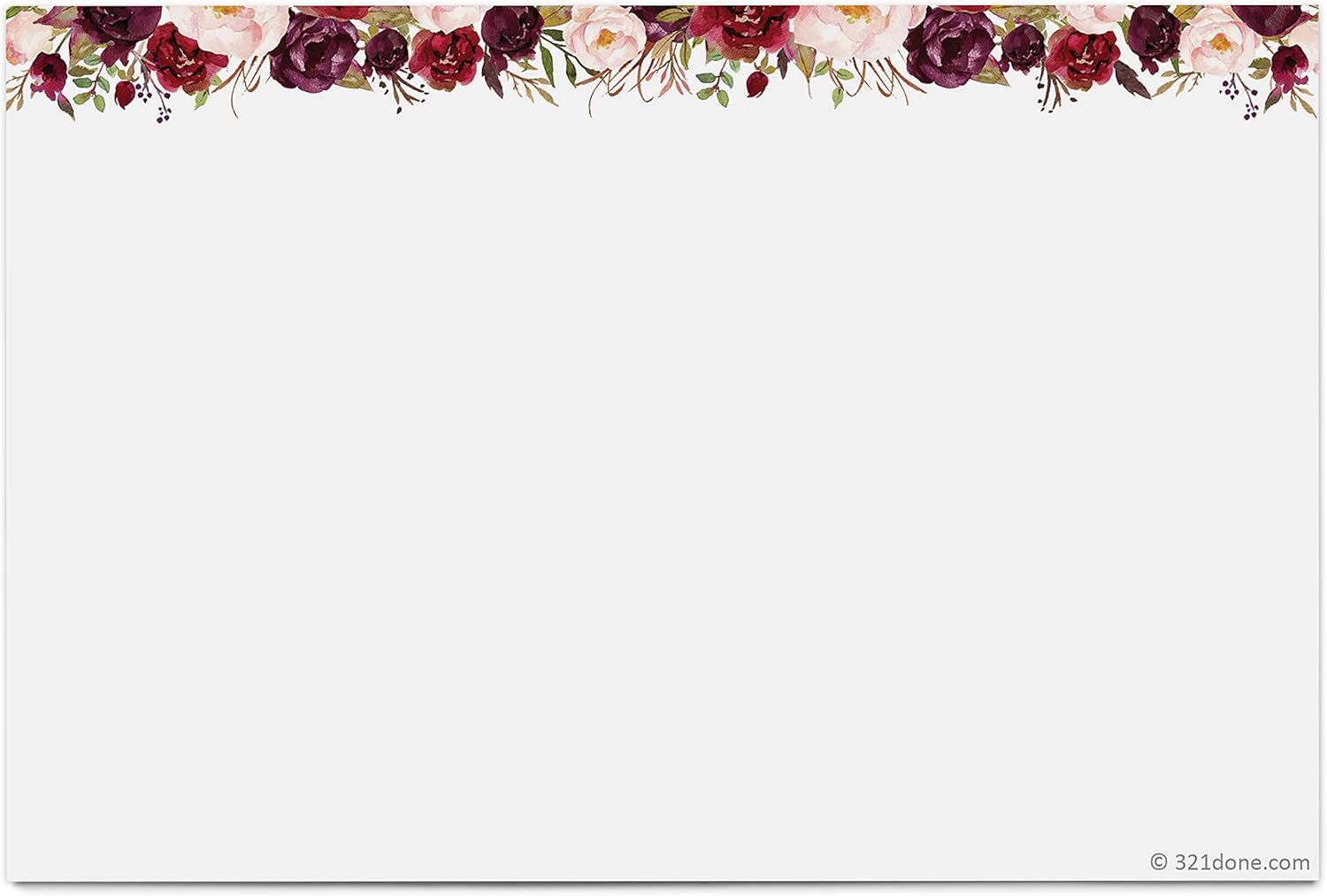 321Done Index Cards with Red Roses Floral Design - (50) 4x6 White Cards - Blank, No Lines - For Studying, Learning, Notes, Messages, Notecards, Crafts & Card Making - Pretty, Cute - Made in USA