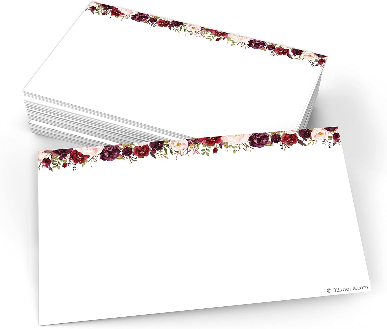 321Done Red Rose Floral Index Cards - Blank, No Lines - (50) Small 3x5 White Cards - For Studying, Learning, Flashcards, Desk Notes, Messages, Notecards, Card Making - Cute, Pretty - Made in the USA