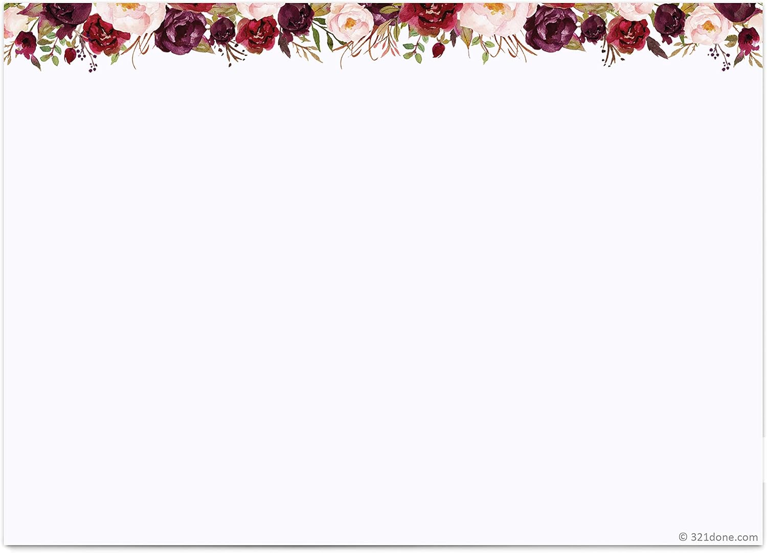 321Done Red Roses Index Cards - 5x7 Cardstock, White (Set of 50) - Blank, No Lines - For Studying, Learning, Flashcards, Notes, Messages, Notecards, Greeting Card Making - Pretty Floral - Made in USA