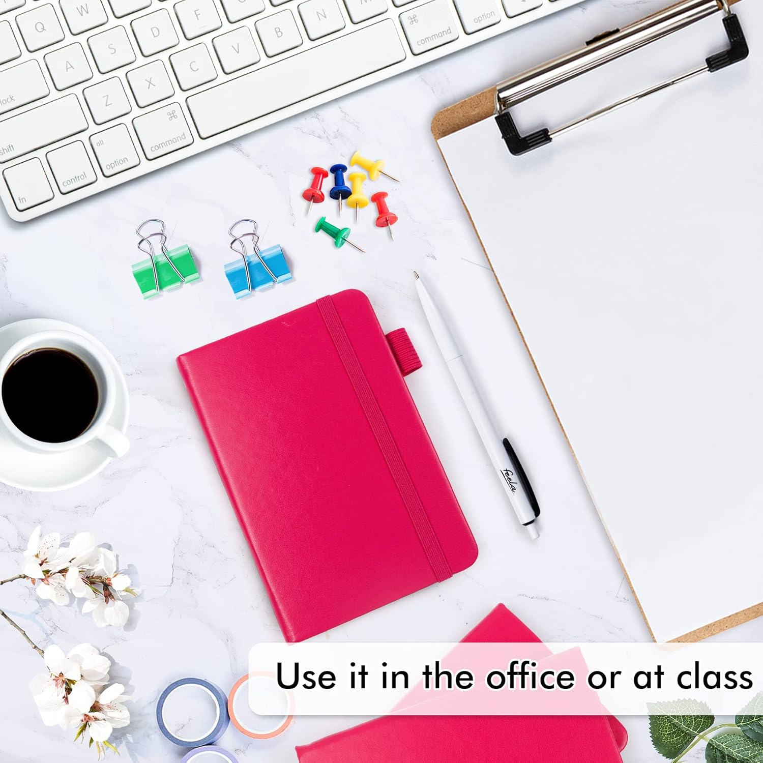 feela 6 Pack Pocket Small Notebooks Bulk, Mini Cute Memo Notepads Hardcover College Ruled Lined Journals with Pen Holder for Women Girls Office School, with 6 Black Pens, 3.5”x 5.5”, A6, Berry