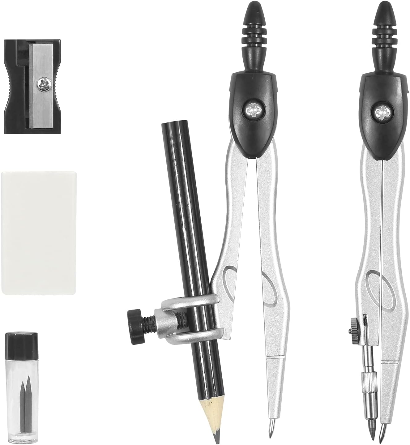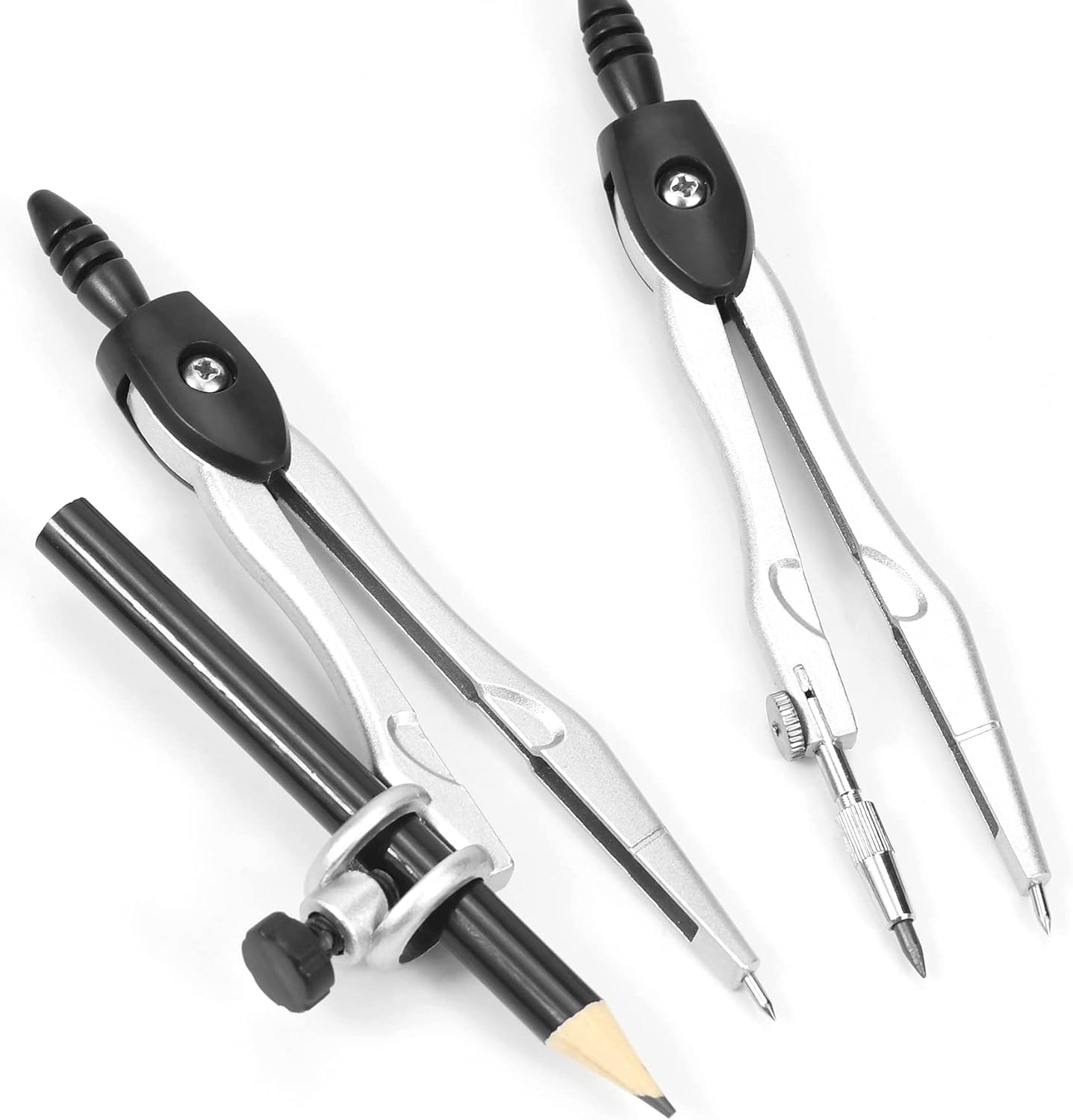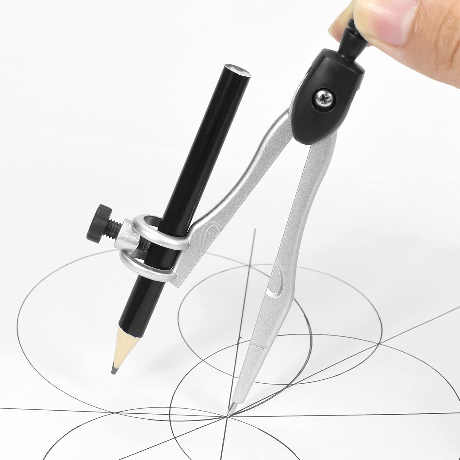 - A Practical Compass Geometry Set: Metal compasses will not bend, Ergonomically designed compass head is comfortable to hold, Universal Holder Compass work with any standard sized pencil or pen