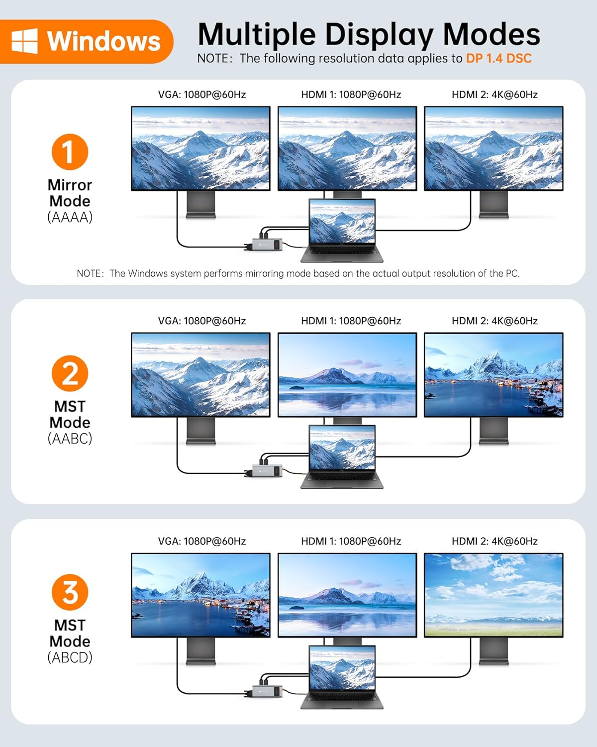 - Docking Station Dual Monitor: Dell docking station will help you easily achieve dual-monitor and triple-monitor display, making your work/life more efficient;( Triple Display 2 HDMI 4KVGA 1080P) ★Please Note Before Purchase: Only the built-in usb c port of your laptop is the fully functional port, you can use the dual/triple monitor function if you are not sure, please send the laptop model and we will help you to check if this docking station is compatible for your device