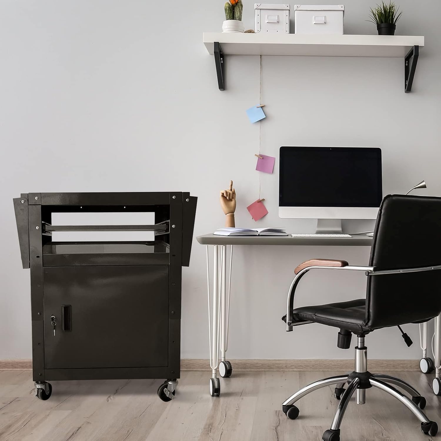 - Extra Space: 42.91''x 17.72'' the AV Cart with Pullout Keyboard Tray and 2 drop leaves side shelves provide more space for multiple screens, a projector, a laptop and a document camera,3D printer.