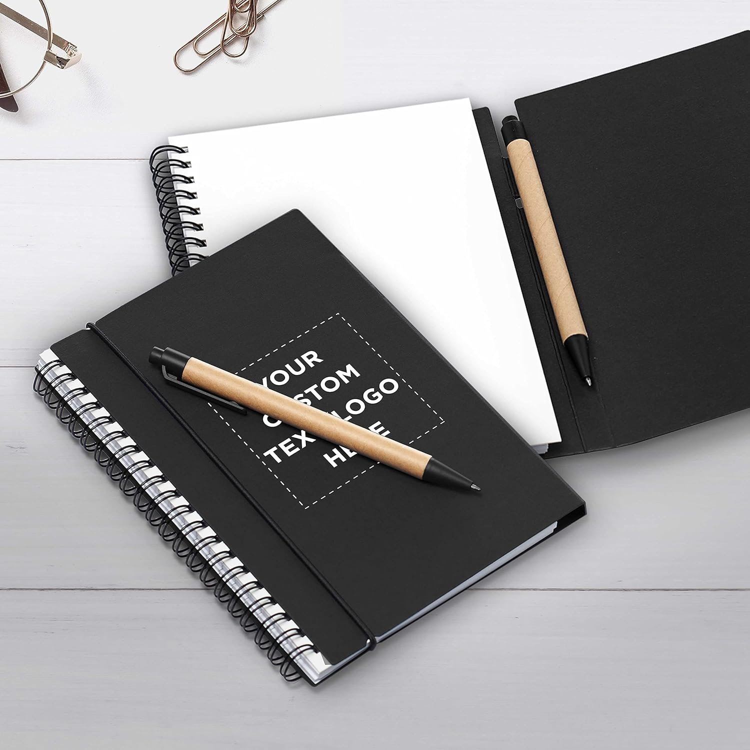 DISCOUNT PROMOS Custom Spiral Notebooks with Elastic Closure Set of 50, Personalized Bulk Pack - Perfect for School, Office, Business and More - Black