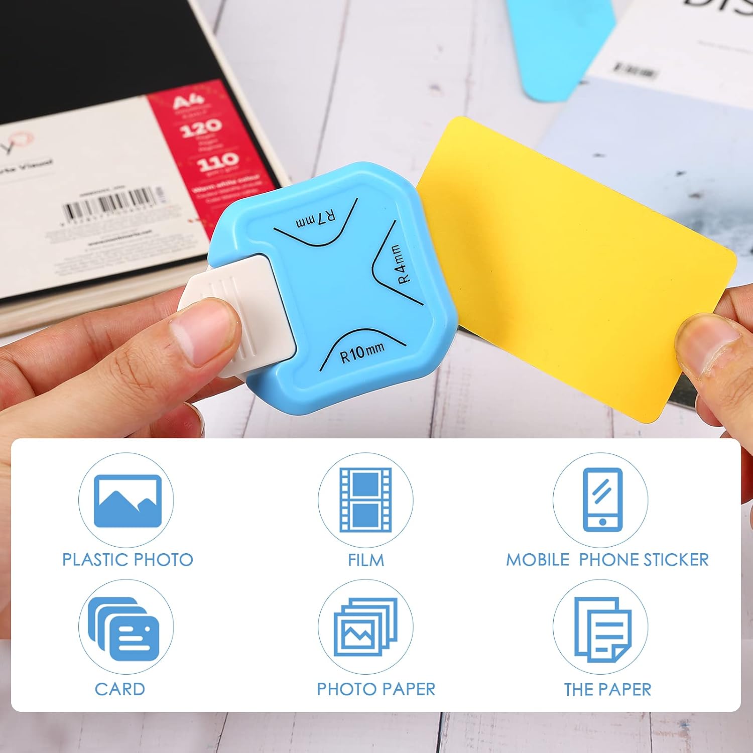 - Cuts 4mm 7mm 10mm Corner Radiuses: This 3 in 1 rounded corner punch has an angle of 4mm, an angle of 7mm and a larger angle of 10mm. The corner rounder punch has each corner measurement silkscreened on the top to easily choose which one to use. Thanks to the three different corner radiuses you only need one punch for corners of different sizes.