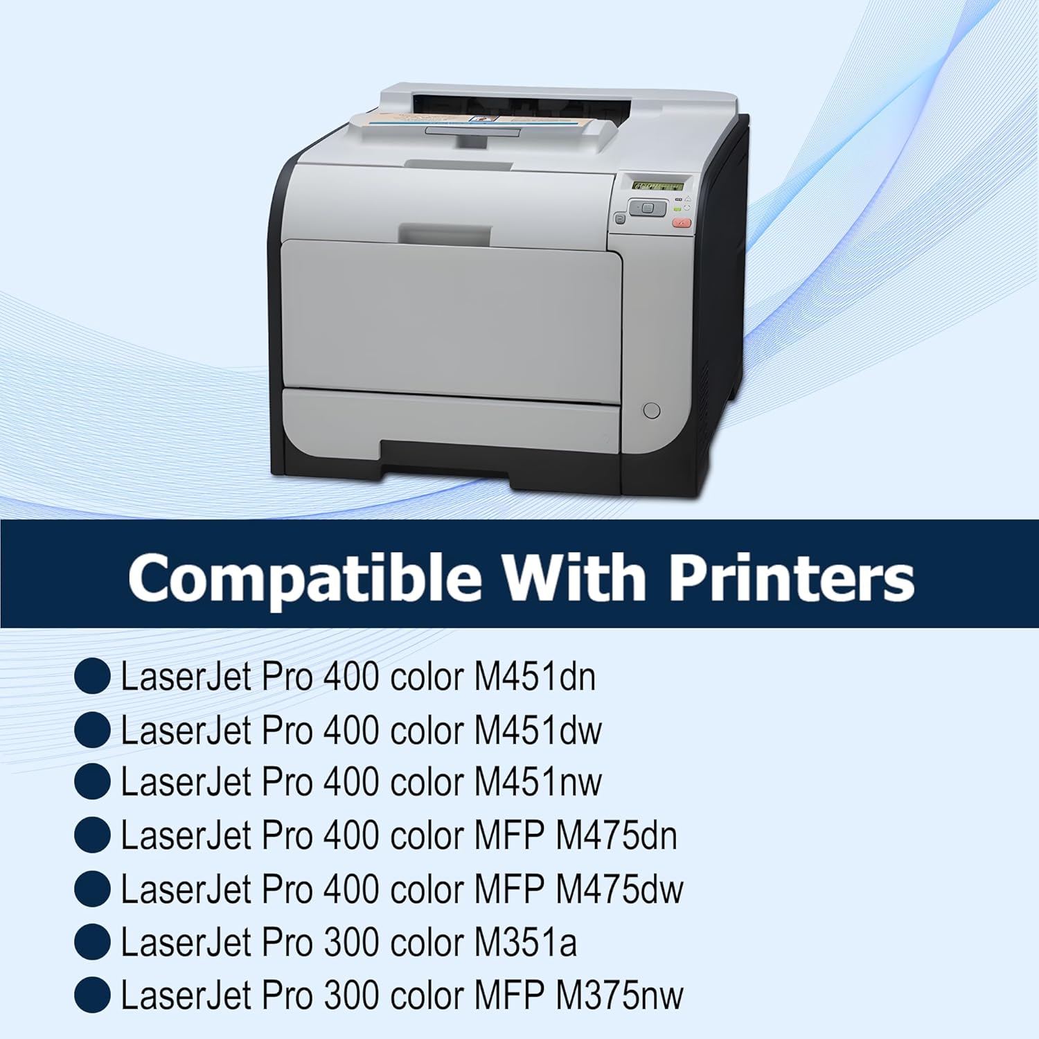 - Compatible Printer: hp LaserJet Pro 400 Color M451 Series(M451nw,M451dn,M451dw), LaserJet Pro 400 Color MFP M 475 Series(M475dn,M475dw)