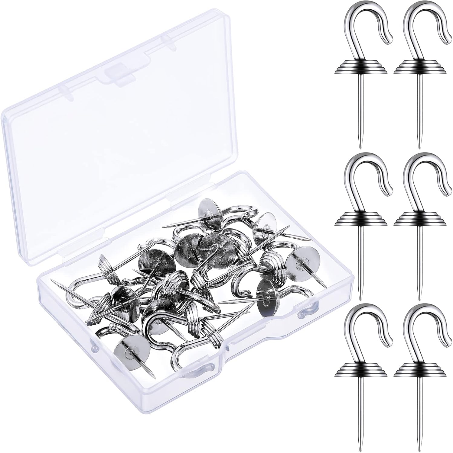 Hotop 30 Pieces Push Pin Wall Hooks Metal Thumb Tack Hangers Iron Alloy Nail Decorative Picture Hooks for 20 Lbs Home Office School Party Supply (Silver)